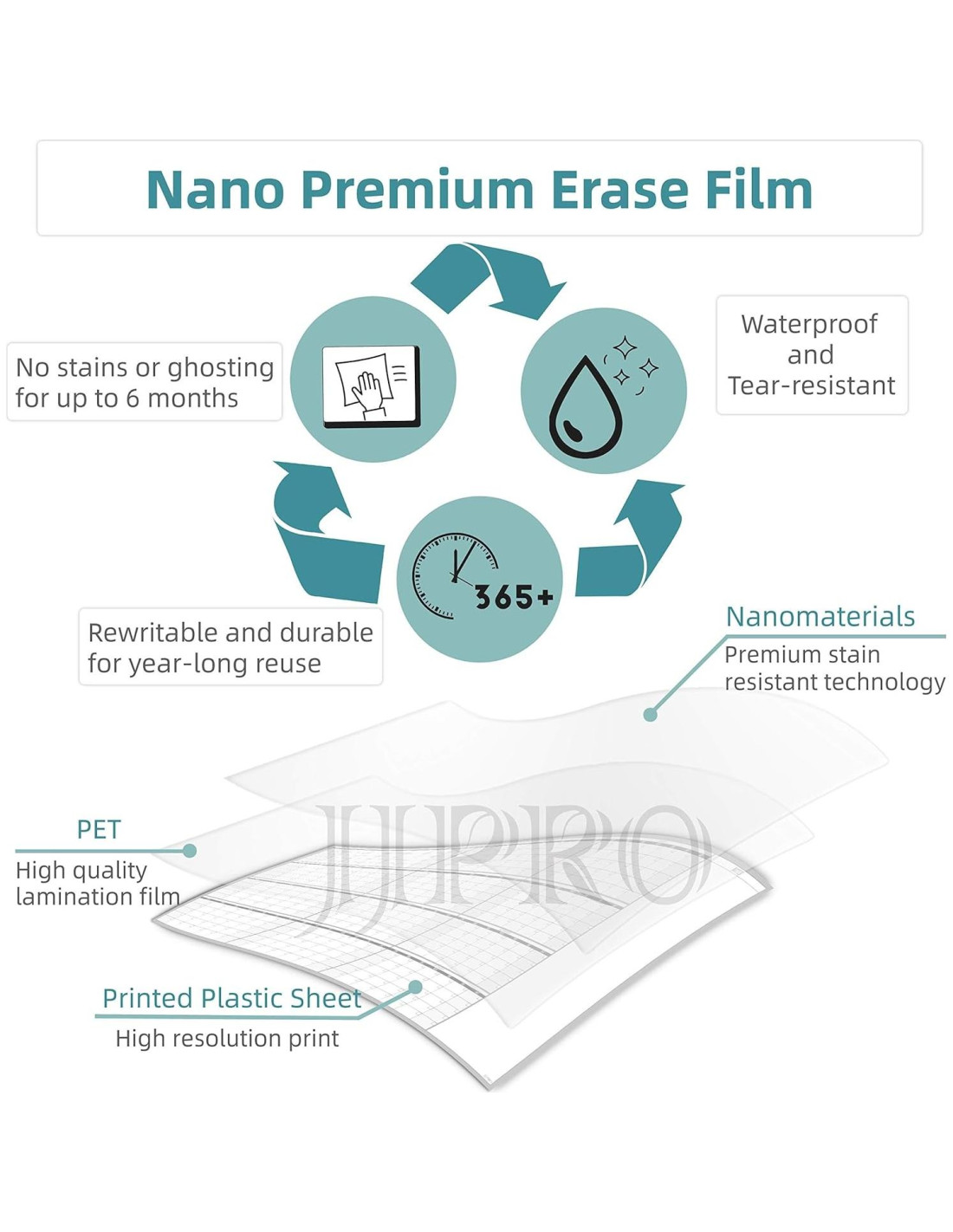 - BORRADO HÚMEDO - Con la película de borrado NANO premium, será muy fácil borrar las escrituras incluso después de varios meses; no dejará ninguna mancha; es impermeable, así que puedes limpiarlo con un paño húmedo si lo deseas.