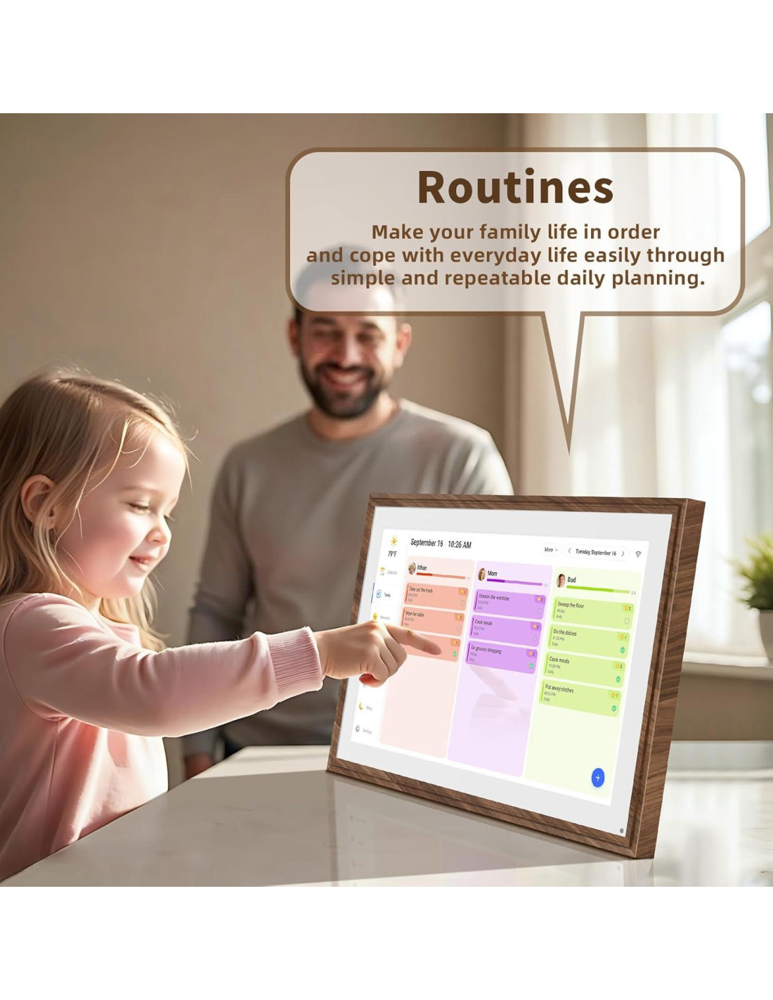 - [Estilo y Pantalla HD] Disfruta de un funcionamiento fluido en este calendario táctil HD 1080P, con un elegante marco de madera desgastada que combina perfectamente la tecnología moderna con el encanto rústico, haciendo que la programación familiar sea sin esfuerzo.