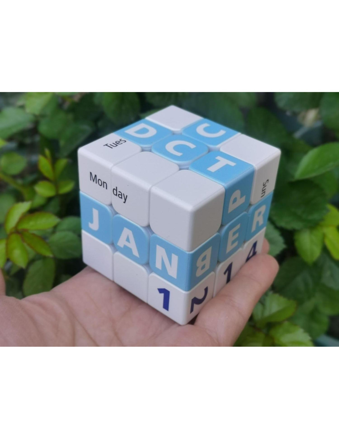 - Ya sea que lo estés resolviendo por diversión o estableciendo la fecha correcta, este cubo combina el juego de rompecabezas con un giro único para el uso diario. Disponible en colores azul y rosa, es un regalo perfecto para cuberos, estudiantes o cualquier persona que disfrute de un ingenioso accesorio de escritorio.