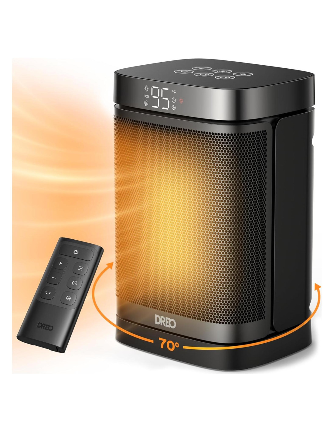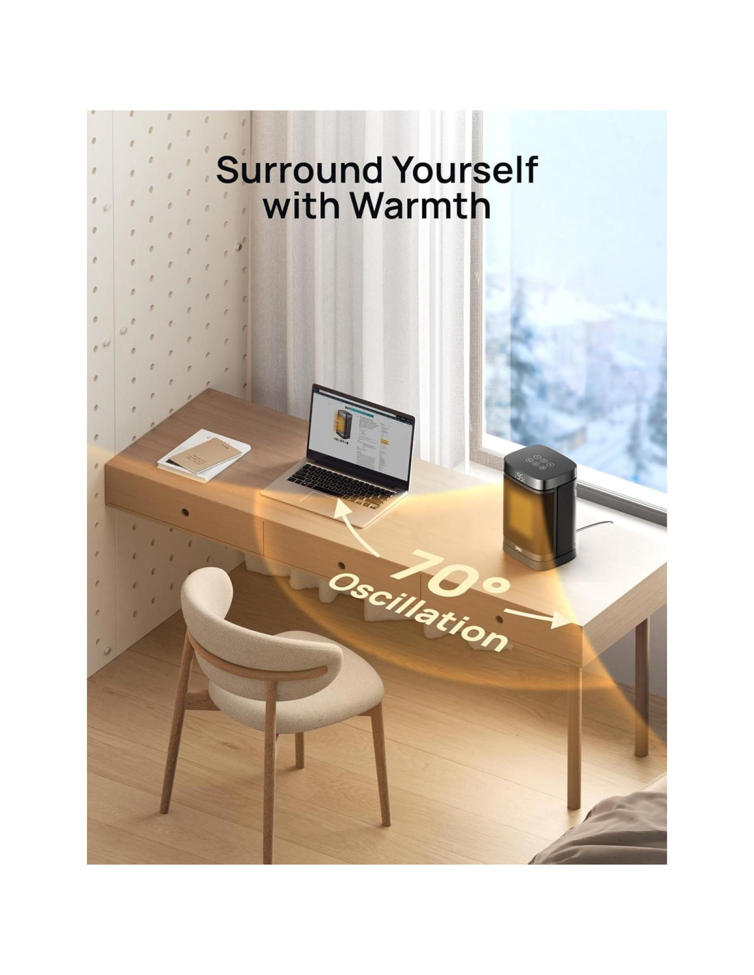 - Calienta Desde Cualquier Ángulo: Experimenta el calor que te envuelve de la manera más amplia posible. La oscilación de 70 barre alrededor para cubrir toda el área, proporcionando calor de amplio alcance para tu dormitorio, garaje, sótano, oficina, escritorio, etc.