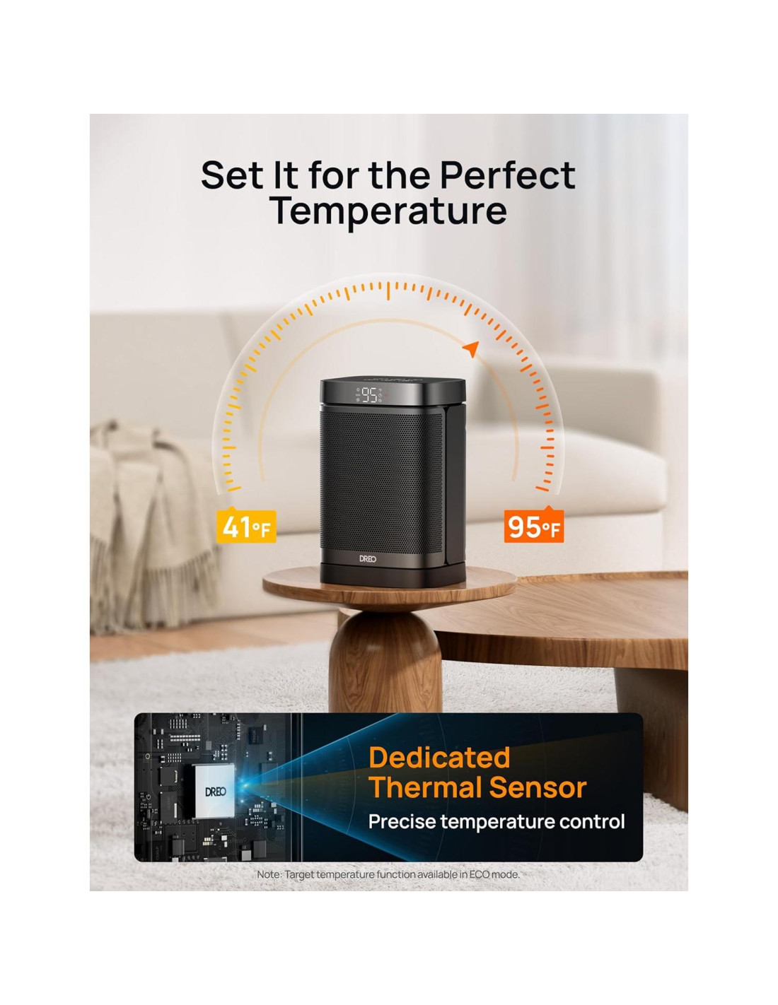 - Ahorra Más en Facturas de Energía: El Modo ECO ajusta automáticamente el nivel de calor para alcanzar tu temperatura deseada mientras ahorras más en facturas de energía. Personaliza tu propia comodidad con el termostato digital de 5 a 35 C, ajustable en incrementos de 1 C. Calor Preciso, Comodidad Precisa