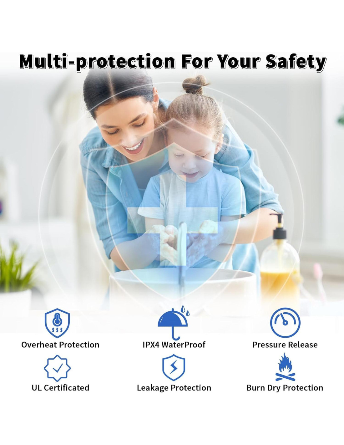 Proporciona control automático de temperatura y liberación de presión. Cuando la temperatura en el tanque es demasiado alta, el calentador de agua eléctrico liberará automáticamente la alta presión del calentador de agua de 9.5 litros para garantizar la seguridad del tanque, proporcionando protección contra sobrepresión y eliminando riesgos de seguridad para usted.
