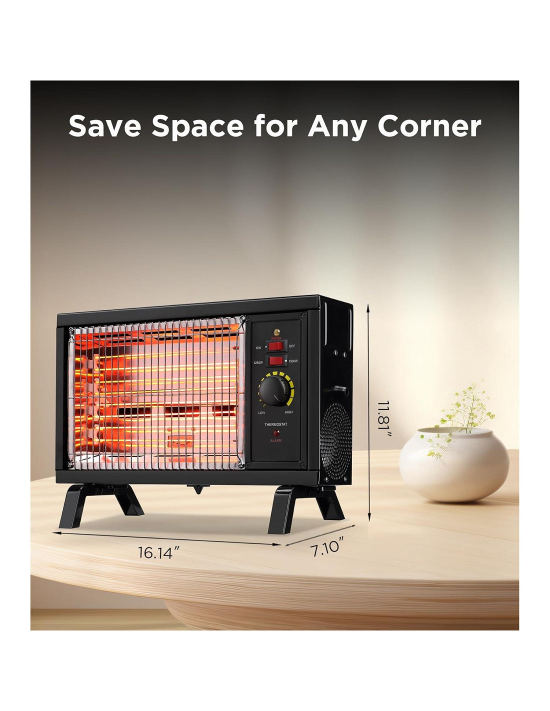 - El calentador radiante calienta rápidamente el aire frío directamente y de forma silenciosa. No hay ninguna molestia al dormir, trabajar, leer, etc. Y el calentador de infrarrojos es amigable con la piel. No reseca tu piel después de un uso prolongado.