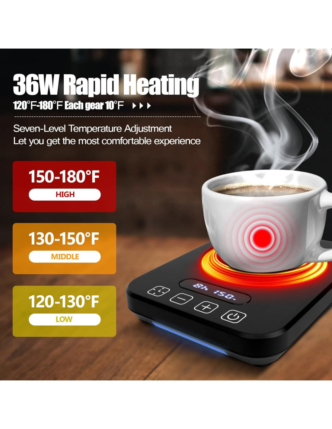 - Fácil de usar: Simplemente enchufa el cable, toca el interruptor y coloca tu taza en el calentador de tazas de café. Ahora puedes disfrutar de tu café caliente desde el primer sorbo hasta la última gota sin interrupciones para recalentar en el microondas. El botón activado por toque con luces indicadoras te permite encender/apagar fácilmente y ajustar diferentes configuraciones de temperatura.