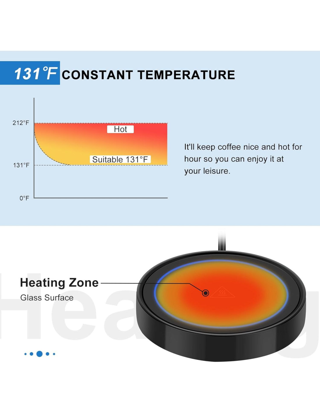 - Calentador de Tazas de Café a 131F (55C) - El calentador de tazas diseñado para mantener tu bebida a una temperatura deseable (131F / 55C). Calentador de café de 19 vatios para usar con café, té, chocolate caliente, cera de vela y más
