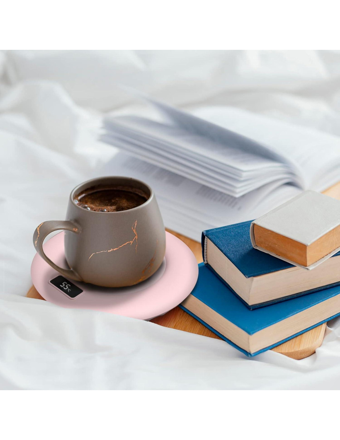 - [La Temperatura Más Saludable] Investigaciones médicas autorizadas han encontrado que 131F (55C) es la mejor temperatura para la salud. Este calentador de tazas no solo puede ralentizar el enfriamiento de las bebidas calientes, sino que también puede calentar tu café hasta 131F (55C) y mantener esta temperatura todo el día, solo la temperatura más adecuada puede liberar el mejor sabor de tu bebida.