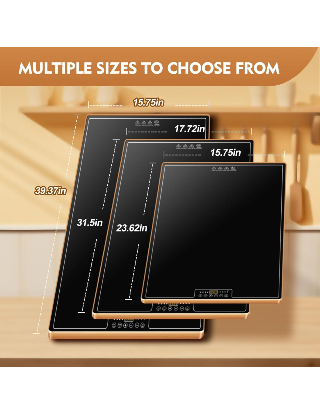 - [Tamaño Extra Grande y Resistente a la Presión y Caídas] ¿Crees que la tabla de corte calentadora tradicional es demasiado pequeña? Ofrecemos tamaños enormes para resolver este problema, no hay problema en colocar de 6 a 8 platos. La placa está hecha de vidrio templado, que es suave y plana, resistente a la presión y caídas. Puedes colocar la olla directamente sobre ella. Perfecto para reuniones familiares, buffets y restaurantes.
