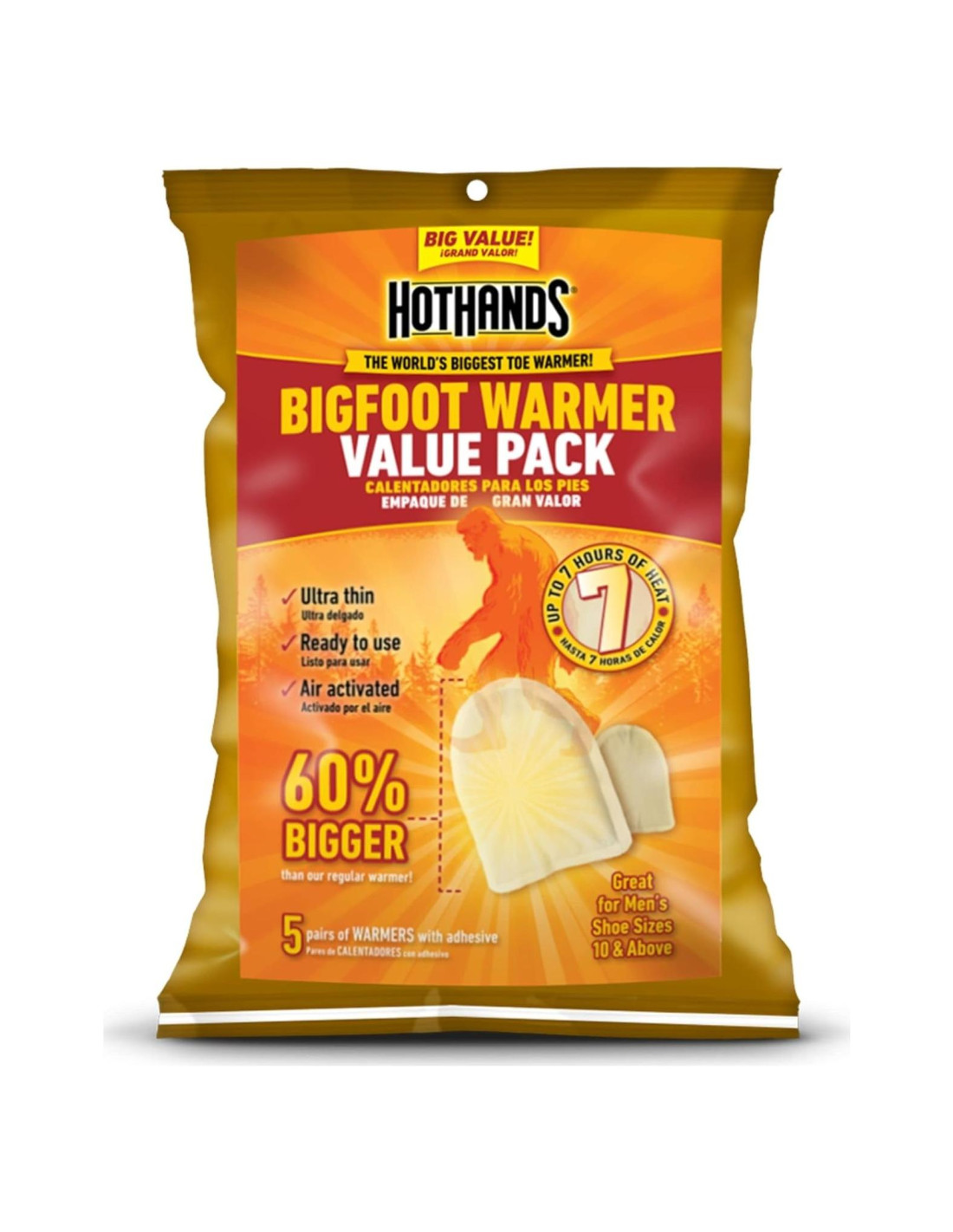 - CALOR NATURAL Y DURADERO - Cada paquete de valor de Calentadores Adhesivos para Dedos de los Pies HotHands Bigfoot contiene 5 pares de Calentadores Adhesivos para Dedos de los Pies extra grandes que están hechos con ingredientes naturales, lo que significa que obtienes 35 horas de calor reconfortante por paquete. Los Calentadores Adhesivos para Dedos de los Pies HotHands Bigfoot son un 60% más grandes que nuestro clásico Calentador Adhesivo para Dedos de los Pies, proporcionando un rango más amplio de calor y comodidad que nunca antes.