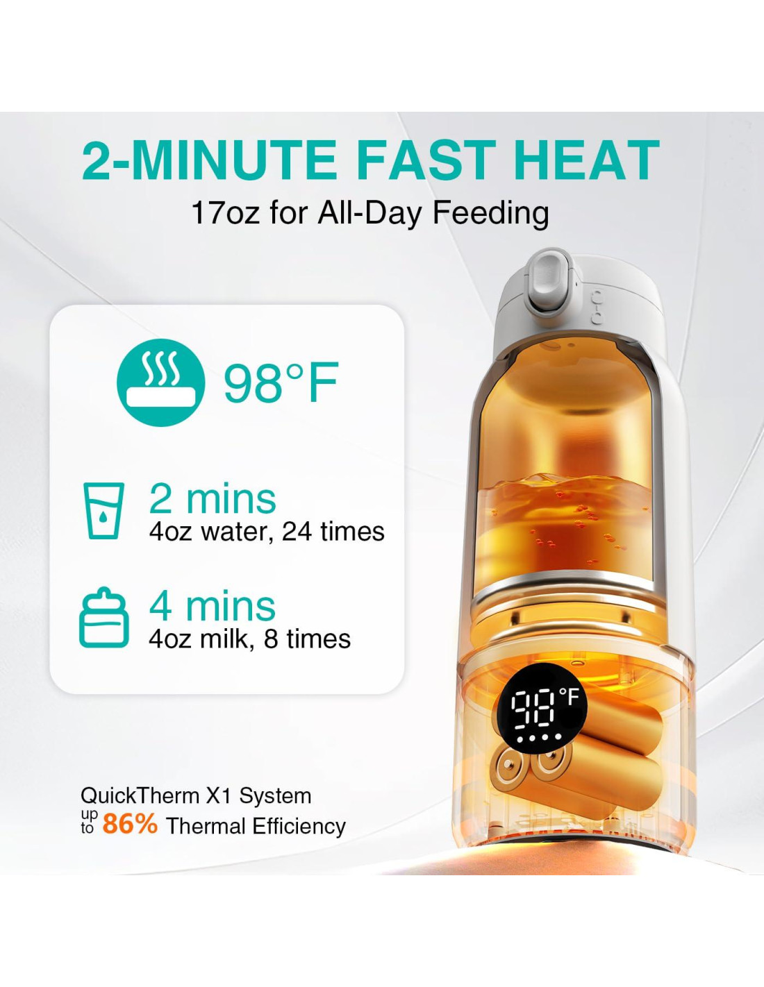- Calentamiento Rápido en Minutos: Calienta 120ml de agua de 26C a 37C en solo 2 minutos-sin más largas esperas durante las alimentaciones nocturnas o en movimiento. Ideal para calentar rápidamente agua para la preparación de fórmula o calentar suavemente la leche materna almacenada. Ajustable con precisión de +/-1C para alcanzar la temperatura de alimentación perfecta de su bebé.