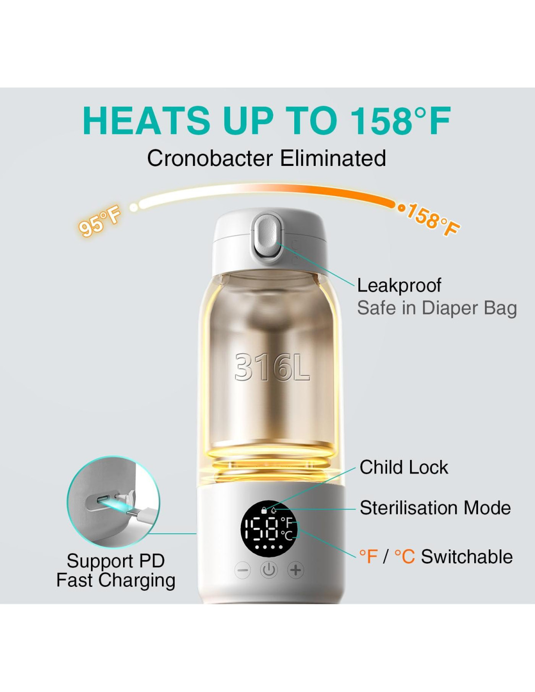 - Gran Capacidad para Alimentación Todo el Día: Hecho de acero inoxidable 316L libre de BPA, este calentador de leche de 500ml tiene suficiente capacidad para múltiples alimentaciones o más de un niño. Su diseño a prueba de fugas previene derrames en las mochilas de pañales-perfecto para salidas largas y viajes familiares.