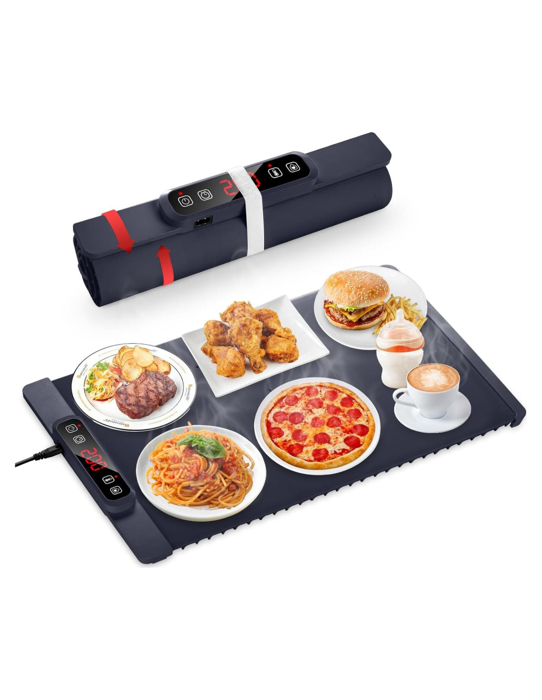 - Fácil de Usar, Limpiar y Mantener Nuestra alfombrilla calentadora de comida eléctrica está equipada con una pantalla LCD visualizada, que es fácil de operar por adultos. Presenta un recubrimiento nano impermeable, resistente a manchas y aceite que asegura una limpieza y mantenimiento sin esfuerzo después de cada comida. El material flexible de la alfombrilla de silicona la hace fácil de enrollar para una organización conveniente. La alfombrilla calentadora de comida portátil incluye una bolsa de almacenamiento, evita el polvo, también es buena para llevar a actividades al aire libre.