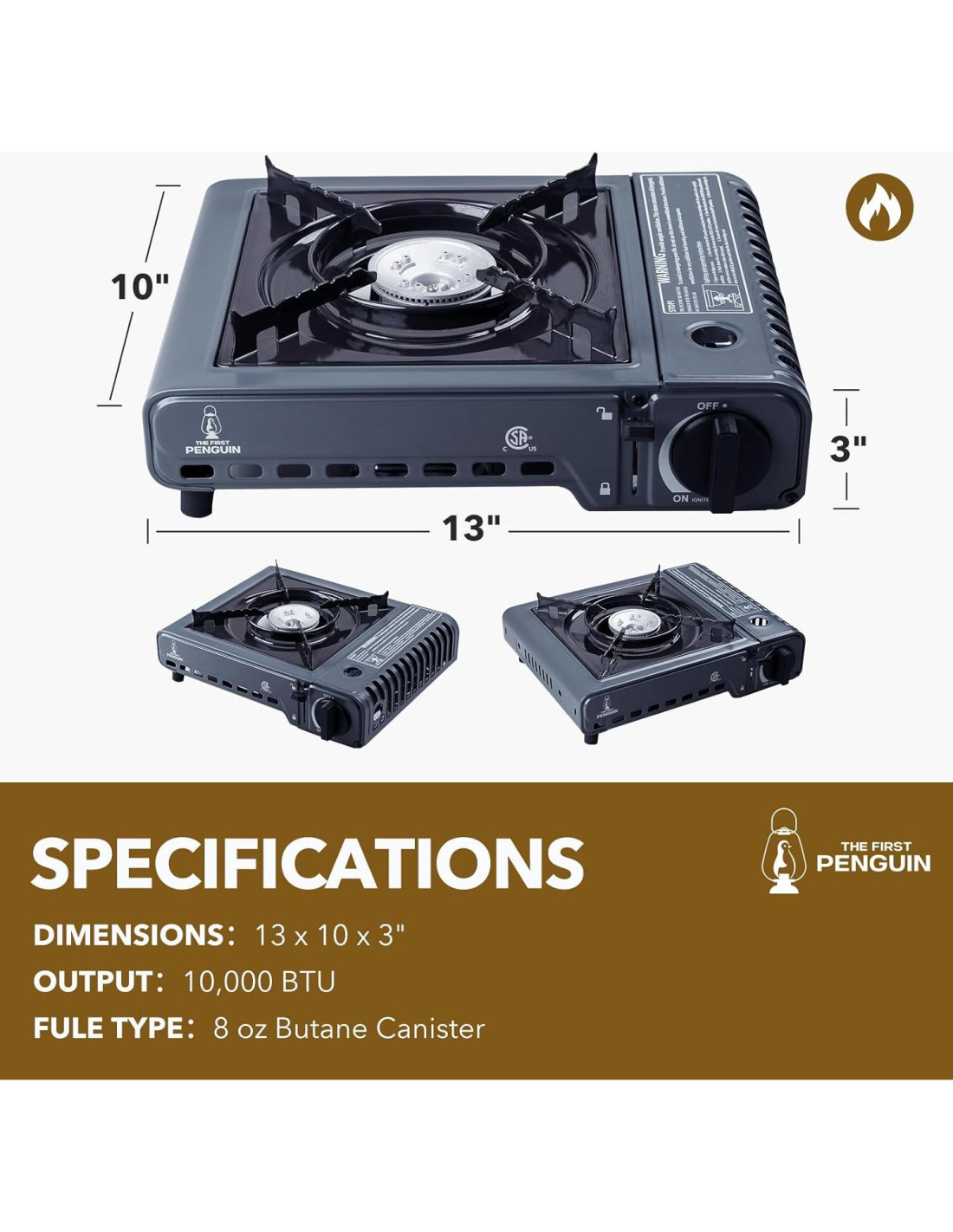 - Combustible de Butano e Ignición Instantánea: ¡Desata el poder de la ignición instantánea! La estufa portátil asegura que pases menos tiempo lidiando con fósforos y más tiempo disfrutando del calor de tus comidas al aire libre. Alimentada de manera eficiente por combustible de butano, es un compañero perfecto para escapadas de camping.