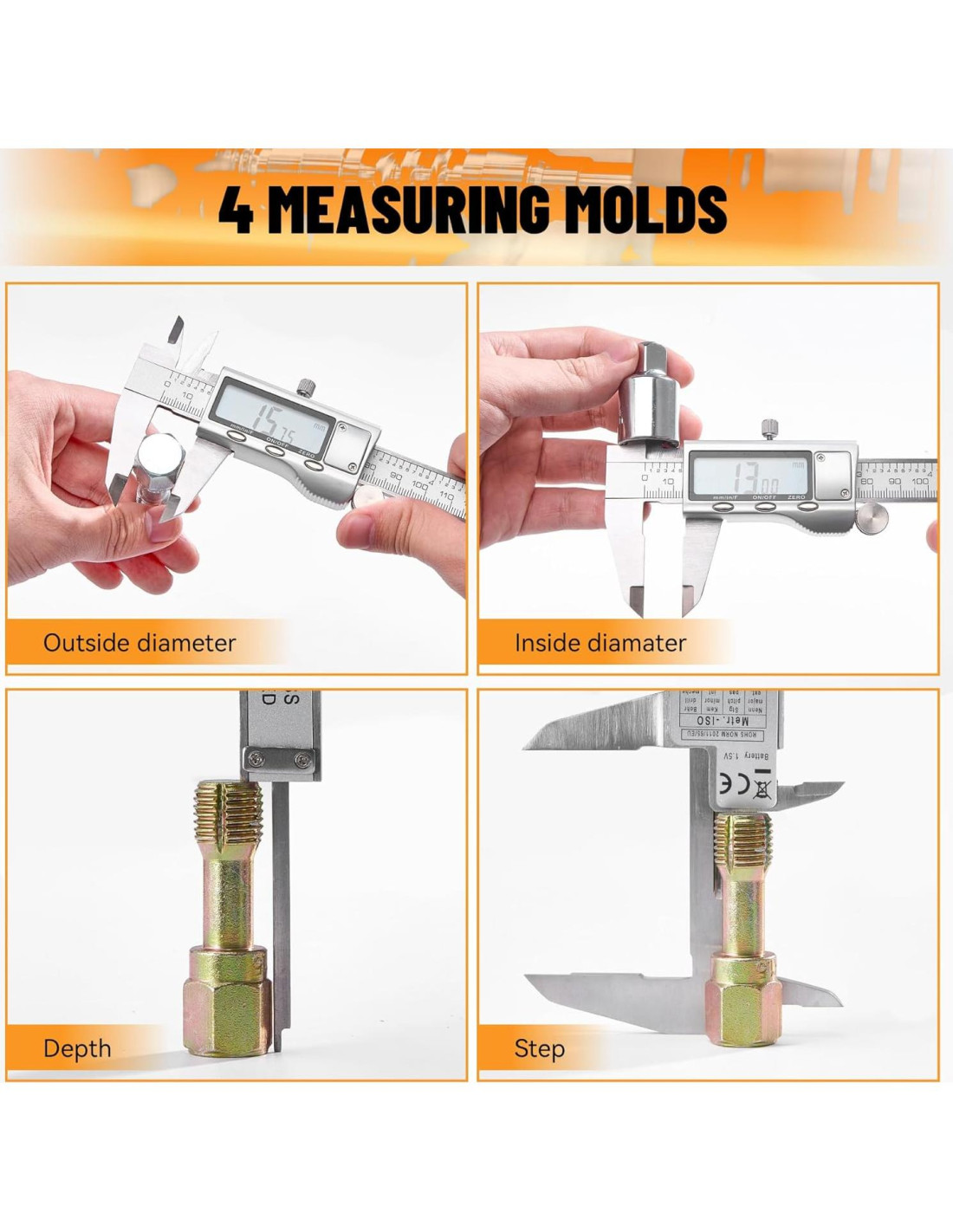 - MODO DE MEDICIÓN FLEXIBLE 4 Con 4 modos de medición versátiles-diámetro interior y exterior, profundidad y paso-este calibrador se adapta a una variedad de tareas. Las mandíbulas y la sonda incluidas lo hacen perfecto para profesionales, aficionados y proyectos de bricolaje. Fácil de usar, asegura resultados precisos cada vez.