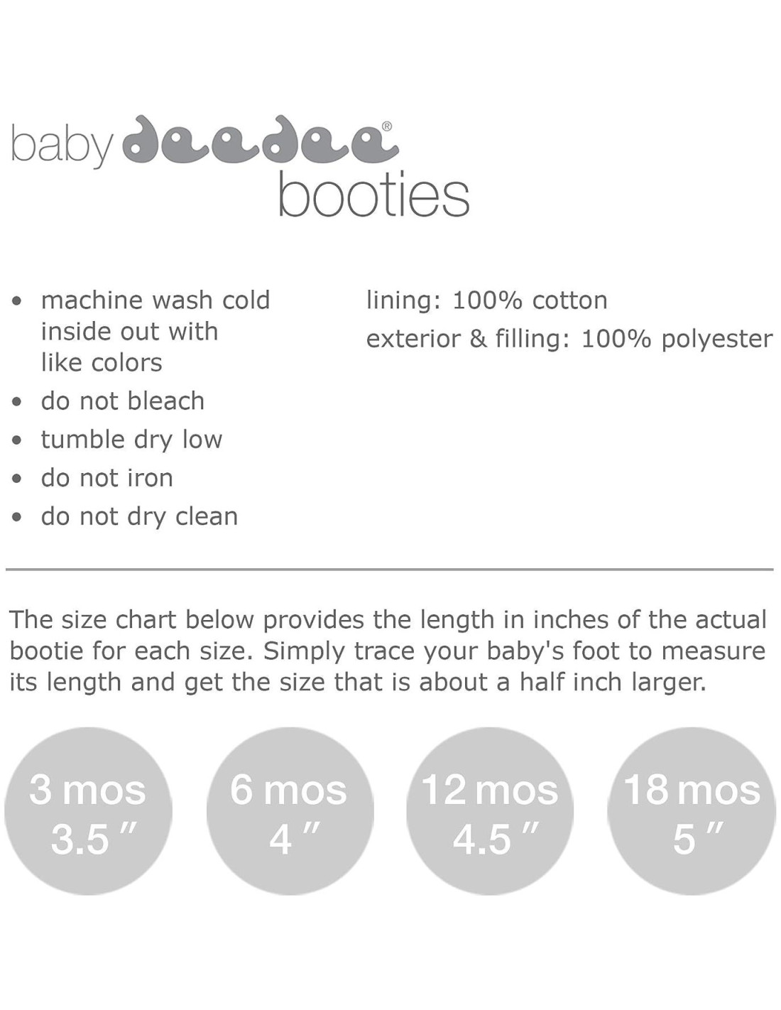 Los botines de forro sherpa de baby deedee con broches son únicos. Con nuestro popular y vibrante piping contrastante, suelas antideslizantes y un diseño de dos broches, las mamás de todas partes están llamando a estos 'el botín perfecto para bebés.' Estos cálidos botines para bebés no solo son lindos, sino también funcionales, ya que nunca se caen y tienen una suela antideslizante para mayor seguridad. Mantén los pies de tu bebé cómodos esta temporada de invierno, caminando por la casa o afuera en el frío, con estos botines de forro ultra suave, cálidos y acogedores. Por favor, consulta la tabla de tallas para estos zapatos de cuna. Talla hasta 18 meses.