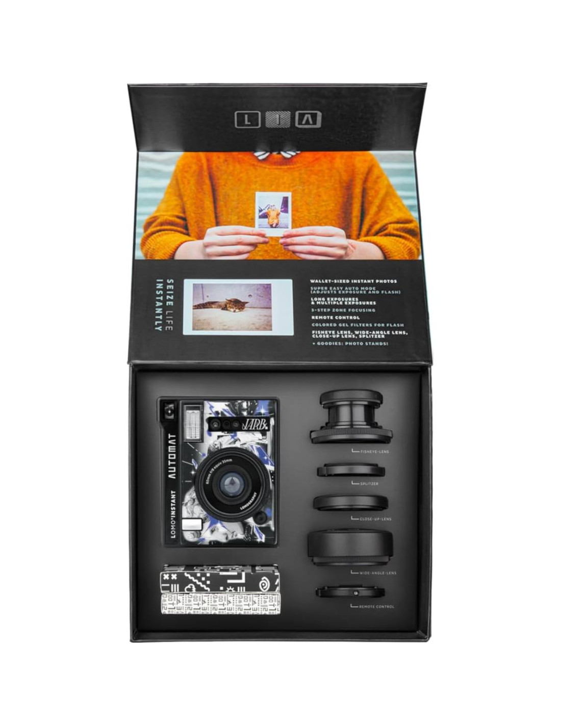La Cámara Lomo'Instant Automat Edición Jarb es una fusión de encanto vintage e innovación moderna. Esta cámara instantánea totalmente automática ofrece resultados impecables con su avanzado sistema de exposición y versátil lente de 60mm. El paquete incluye tres accesorios de lente creativos - Ojo de pez, Gran angular y Acercamiento - que te permiten explorar diferentes perspectivas. Con velocidades de obturación que van de 1/125 a 8 segundos en Modo Automático y hasta 30 segundos en Modo Bulb, además de opciones de apertura de f8 y f22, tienes control total sobre tu fotografía instantánea. La cámara cuenta con un flash incorporado, capacidad de múltiples exposiciones, e incluso viene con un control remoto para autorretratos. Compatible con película Fujifilm Instax Mini, este diseño de edición limitada por Jarb te permite capturar recuerdos con un toque artístico. La cámara funciona con dos baterías CR2, mientras que el control remoto requiere una batería CR1632, asegurando que siempre estés listo para capturar esos momentos espontáneos.