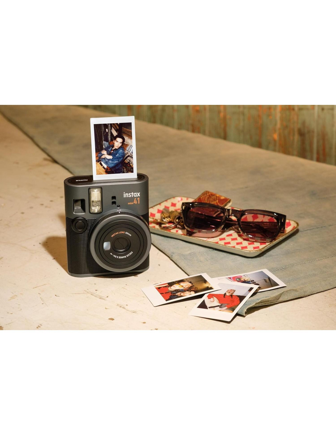 Presentamos lo último en estilo clásico: la cámara instantánea instax mini 41. Con características elegantes y fáciles de usar y un diseño verdaderamente atemporal, estás listo para una experiencia fotográfica única y con estilo. Toma el Espejo Selfie incorporado, ubicado junto al Lente, por ejemplo. Combinado con el Modo Acercamiento, tomar un selfie es la simplicidad en su máxima expresión. Simplemente alinéate en el espejo y disfruta de estar 'en el momento', especialmente con el Control Automático de Flash. El Modo Acercamiento también te brinda la ventaja adicional de capturar imágenes centradas de cerca gracias a los beneficios de la Corrección de Paralaje. Esencialmente, el Visor ajusta la posición de la marca de 'enfoque' a la parte inferior izquierda del marco. Hablamos de solo unos milímetros, pero hace toda la diferencia. Y para mantener la fotografía casual, pero intencionada, la cámara instantánea instax mini 41 ajusta automáticamente su velocidad de obturación a tu entorno para fotos ideales. Porque capturar la toma perfecta es mucho más importante que pensar en ajustar cualquier configuración. Luego están los looks. Incluso el crítico más exigente estará silenciosamente complacido con esta mezcla de encanto vintage y artesanía moderna. El cuerpo texturizado y táctil es excelente para el agarre, y el sutil acabado metálico y los acentos de color naranja añaden un toque sutil de elegancia. Para fotos estéticamente agradables con un mínimo esfuerzo, no busques más que la cámara instantánea instax mini 41. Desde un diseño de lente fácil de operar hasta el Control Automático de Exposición que se ajusta a la iluminación ambiental, esta es una cámara instantánea diseñada para la acción sin esfuerzo.