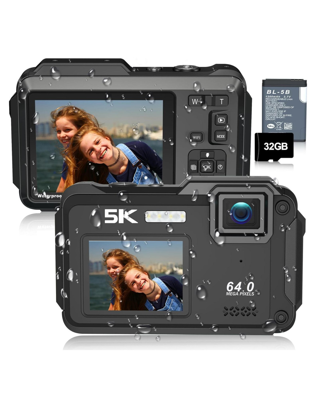- Cámara Impermeable 5K&64MP: La cámara impermeable soporta resolución de video 5K y resolución de imagen 64MP, lo que la hace ideal para snorkel y otras actividades submarinas. Ya sea que estés buceando en las profundidades para explorar o capturando momentos cotidianos, nuestra cámara digital impermeable puede capturar los momentos más emocionantes e inolvidables. Bucea bajo el agua para capturar el momento y dar vida a tus imágenes submarinas. Comencemos nuestra aventura submarina con esta cámara submarina para snorkel.