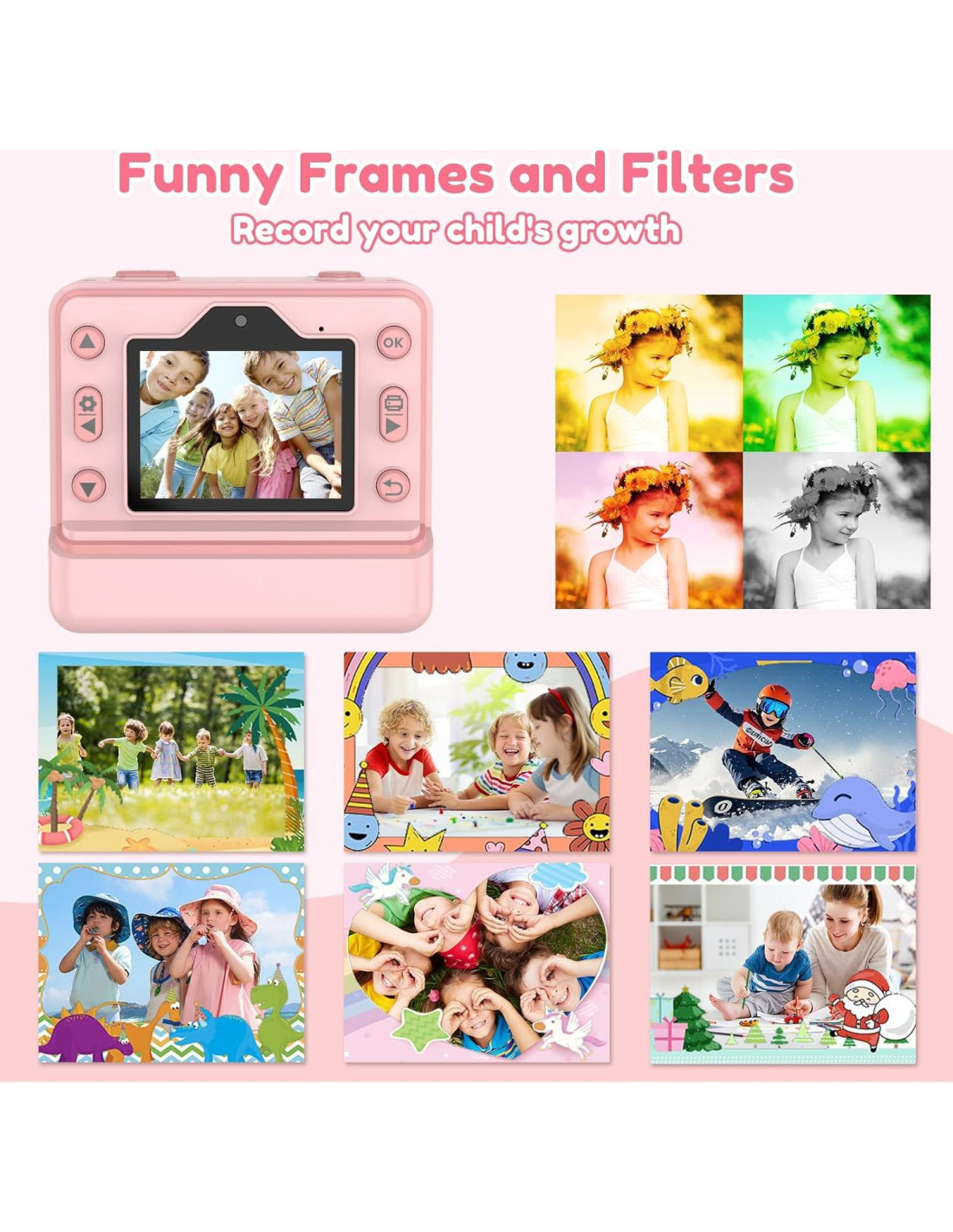 - Cámara Digital Multifuncional para Niños: Nuestra cámara de impresión instantánea para niños viene con una pantalla de 2.4 pulgadas, cámara HD 1080P, zoom 10x, flash, modo de lapso de tiempo, disparo en ráfaga, un reproductor MP3 y 3 juegos simples.