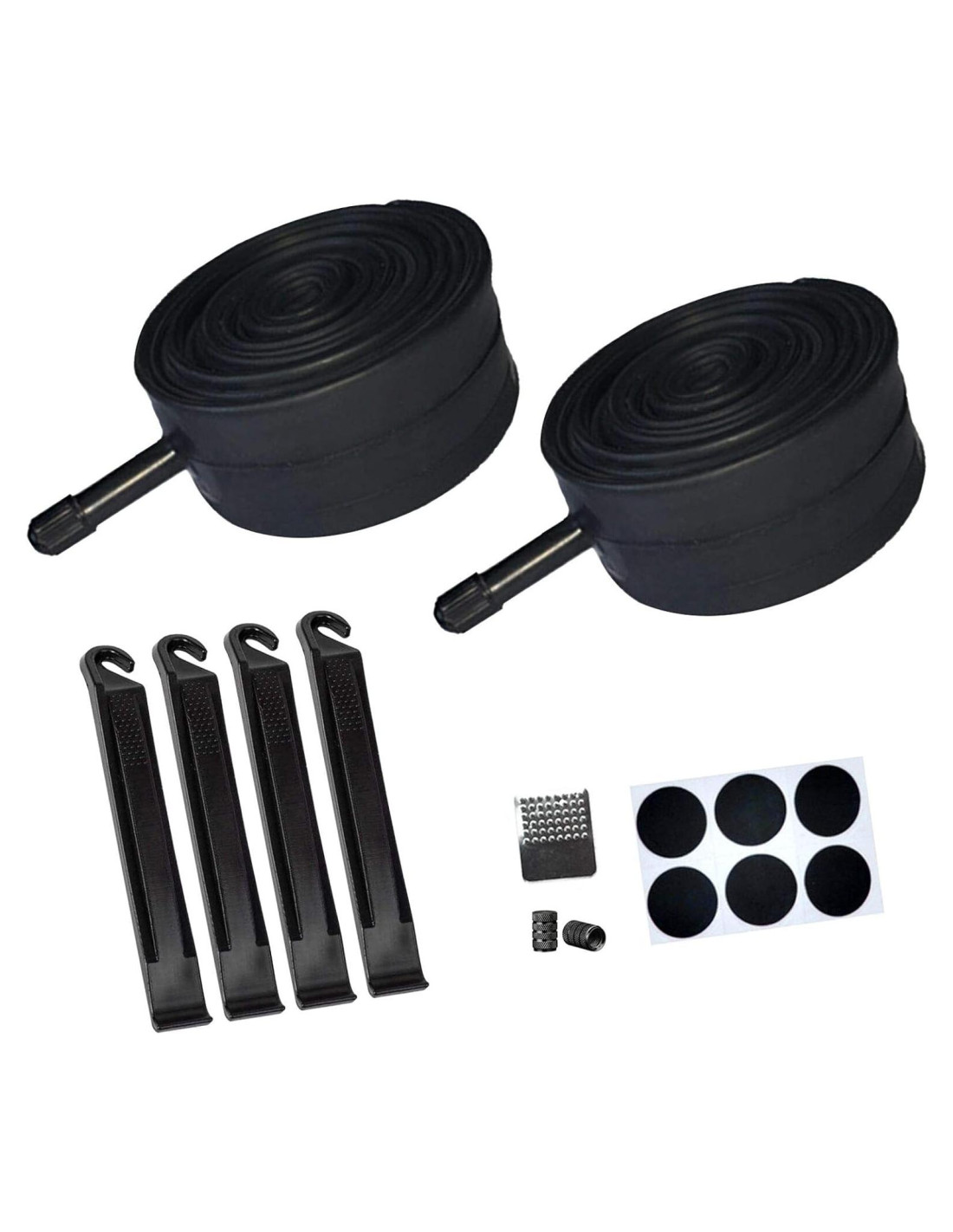 - 5.El Paquete Incluye: 2 Pack 14'' x 1.75/1.95/2.15 cámara de bicicleta, kits de herramientas de reparación de tubos de bicicleta incluyen 4 palancas de neumático, 6 parches redondos autoadhesivos, 1 raspador de metal, 2 válvulas Schrader gratis.