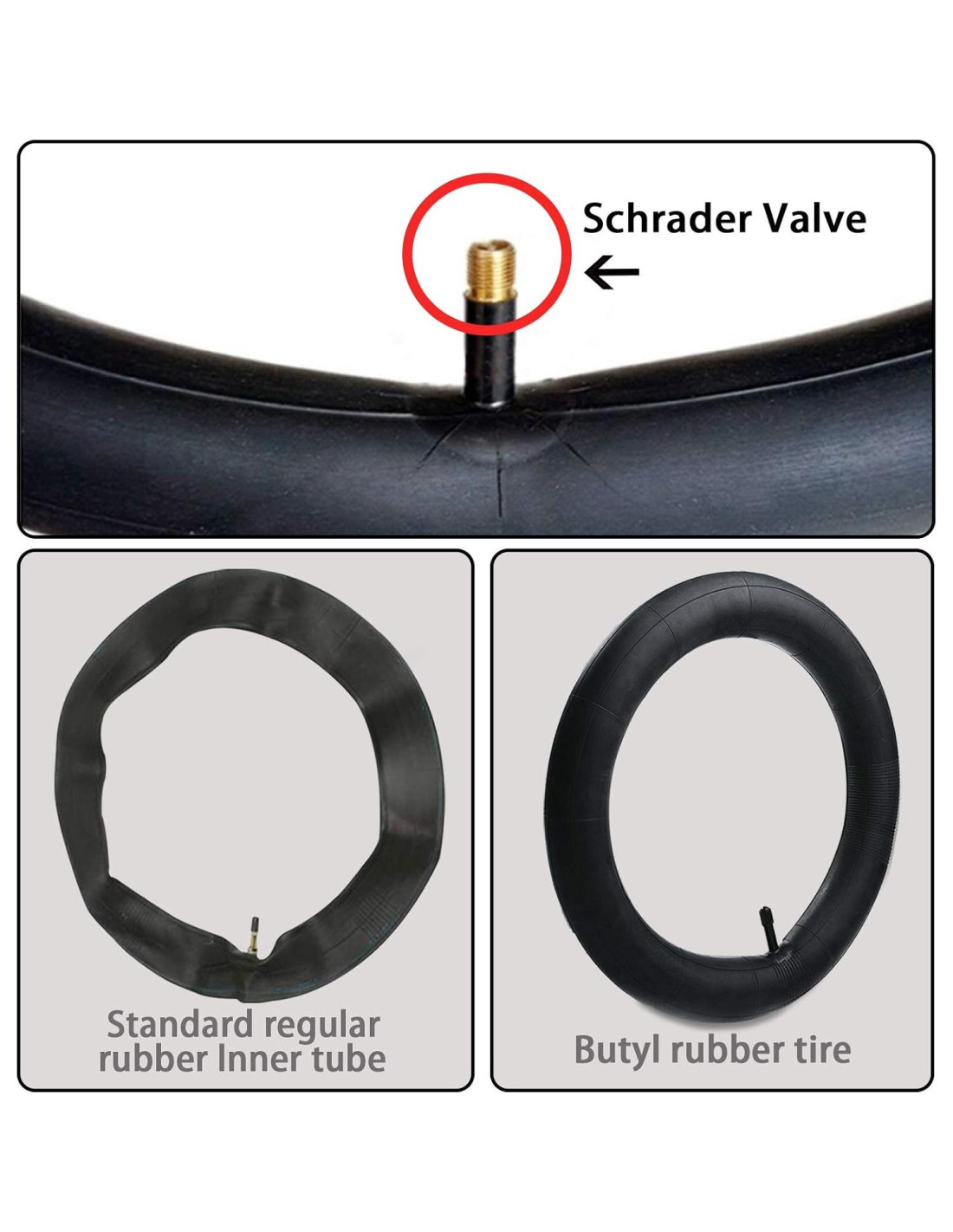 Realiza las reparaciones fáciles a tu bicicleta que son necesarias utilizando nuestra Cámara de Aire. Este producto se puede usar para ayudarte a restaurar tu paseo a su nivel original de rendimiento. La cámara de aire Schrader está hecha de un material premium que puede soportar un uso diario constante. Es adecuada para varios modelos de neumáticos siempre que midan en el rango de 14" x 1.75-2.15". Con nuestros kits de reparación, quitar el neumático se vuelve simple, luego quita el tubo viejo, inserta el nuevo, restablece el neumático y luego infla. Se puede hacer en casa sin necesidad de pagar a un profesional. Nota: Primero y ante todo, necesitas asegurarte de que el tubo se ajuste a tu neumático. Para determinar el tamaño, debes verificar las marcas en la pared lateral de tu neumático donde verás dos números separados por una 'X'. El primer número se refiere al diámetro del neumático, y el segundo número se refiere al ancho del neumático. El tamaño de nuestros productos es 14'' x 1.75/1.95/2.15. Características: Hecho de caucho butílico de alta calidad y duradero. Se adapta a todas las bicicletas de 14", ancho de 1.75" a 2.15". Buen rendimiento de sellado, sin fugas de aire, resistencia al ozono, anti-envejecimiento, absorción de impactos y durabilidad. Suficientes accesorios para una fácil instalación, incluye 4 palancas de neumático, 6 parches redondos autoadhesivos, 1 raspador de metal, 2 válvulas Schrader. Previene explosiones por alta presión. Paquete de Valor: 2 Pack 14'' x 1.75/1.95/2.15 Cámaras de Bicicleta 4 x Palancas de Neumático 6 x Parches Redondos Autoadhesivos 1 x Raspador de Metal 2 x Válvulas Schrader gratis. Consejos Útiles: Si tienes alguna pregunta o problema, contáctanos directamente para obtener ayuda por correo electrónico en cualquier momento. Agradecemos la oportunidad de aprender de tu experiencia, y lo haremos mejor.