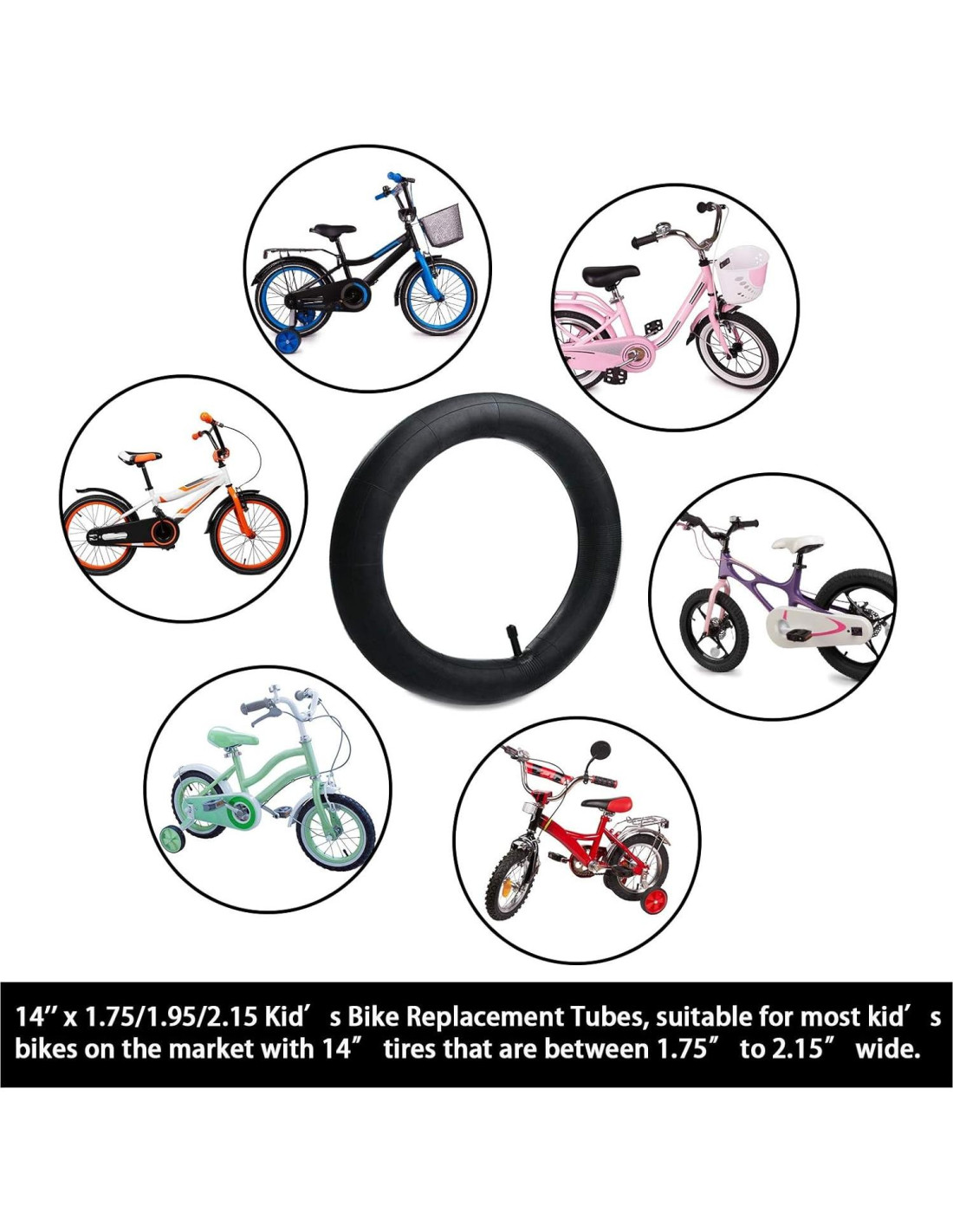 - 1.Tamaño: 14'' x 1.75/1.95/2.15 Tubos de Repuesto para Bicicletas de Niños, adecuados para la mayoría de las bicicletas de niños en el mercado con neumáticos de 14" que están entre 1.75" y 2.15" de ancho.