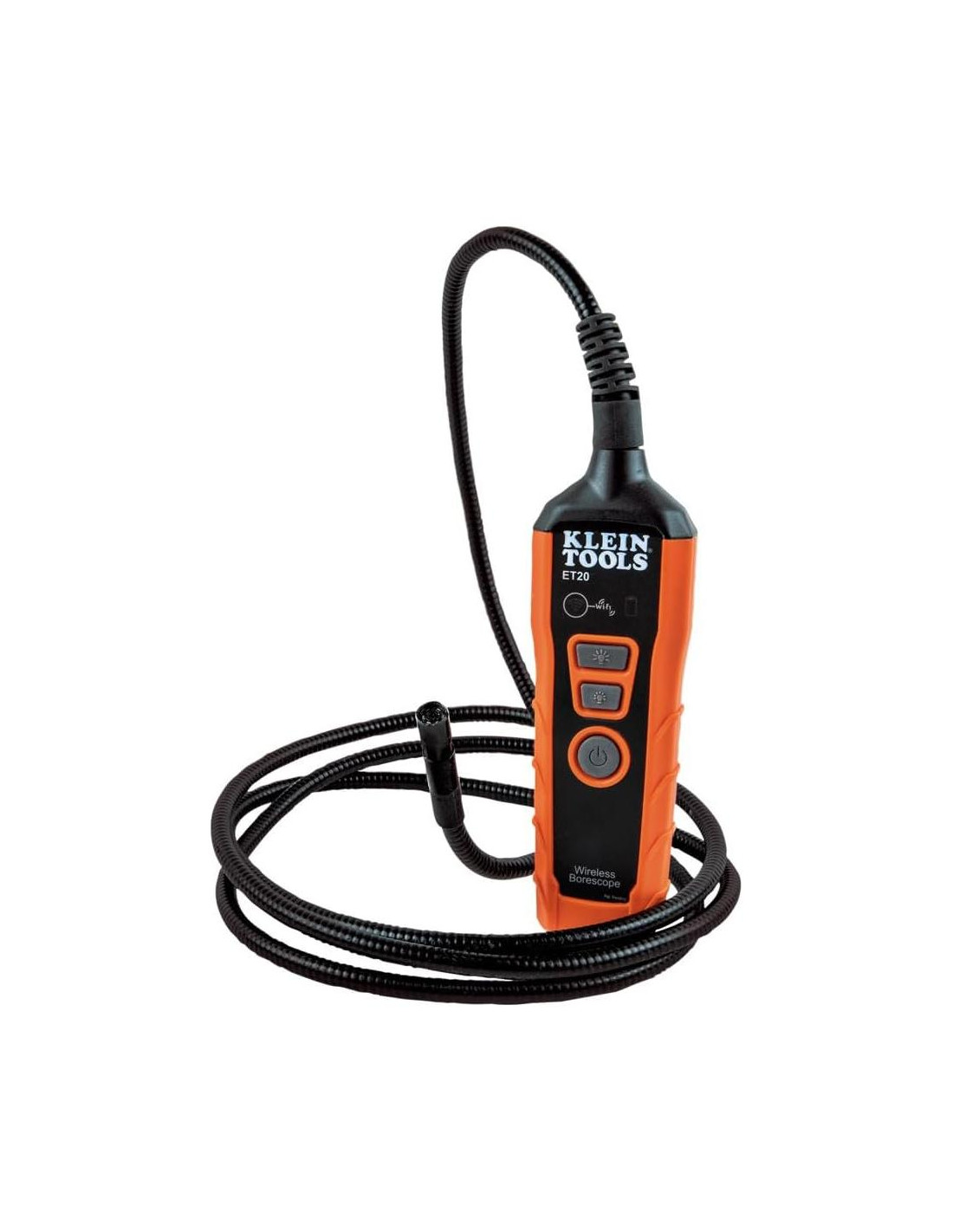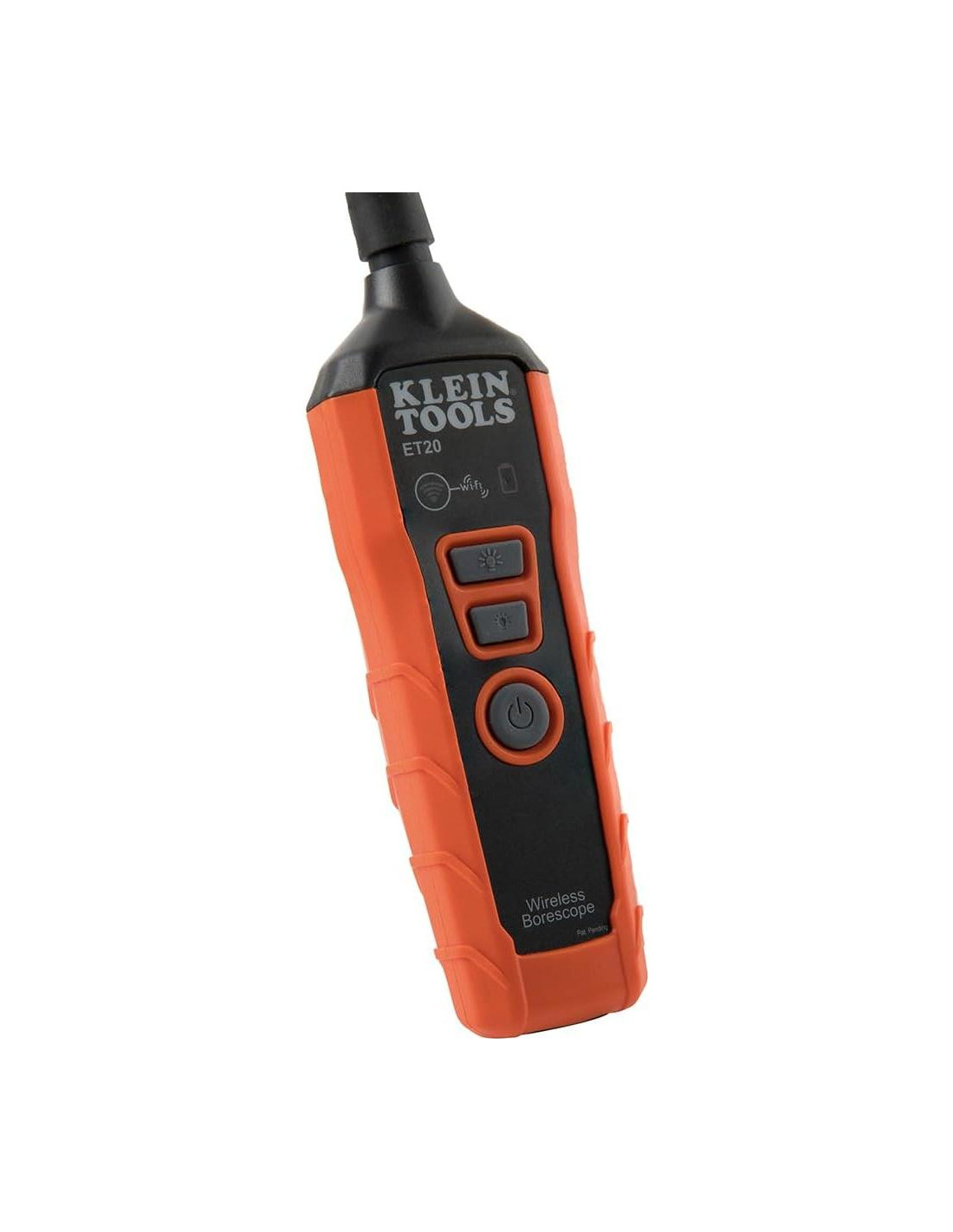 El nuevo Klein Tools ET20 Borescope se puede conectar rápidamente a su teléfono inteligente a través de la señal WiFi incorporada, convirtiendo el teléfono inteligente en su bolsillo en una herramienta inteligente. Instale la aplicación compatible en su teléfono para mostrar, grabar, almacenar y también compartir sus imágenes y videos a través de texto o correo electrónico. Este Borescope le permite capturar fotos y videos de alta calidad directamente en su dispositivo desde hasta 30 pies (9 m) de distancia. Cuenta con una cámara impermeable de 9 mm con un cable flexible de cuello de ganso de 6 pies (1.8 m) duradero y blindado, luces LED integradas, clip de bolsillo conveniente y batería de iones de litio recargable.