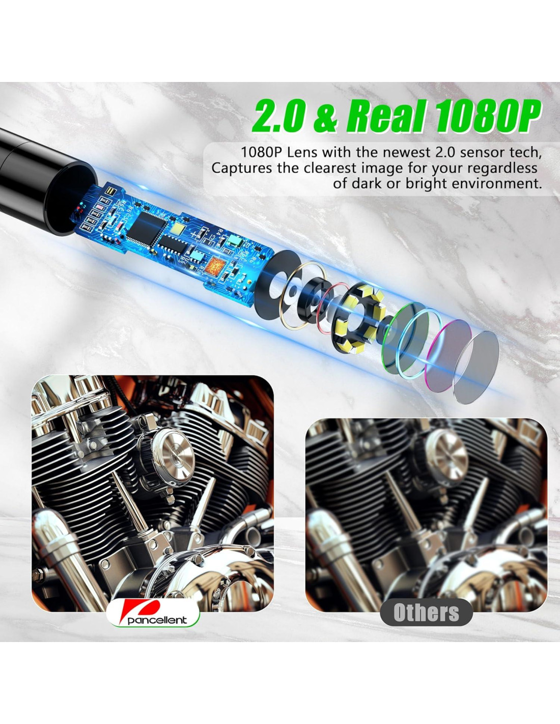 - [ Diseño Ergonómico de Mano] Una cámara de inspección borescope diseñada ergonómicamente con un diseño de mano conveniente que se puede operar con una mano mientras trabaja. Cuerpo mate antideslizante hace que la cámara endoscópica con luz sea cómoda de sostener, ligera y conveniente, y más fácil de usar.