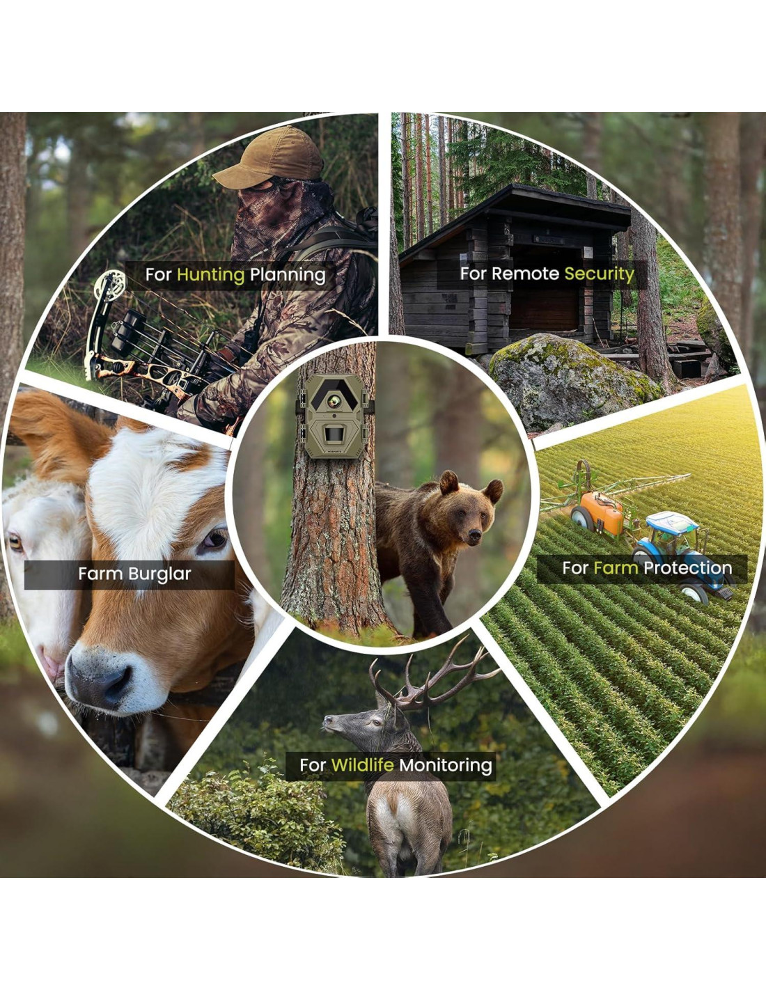 - Usos específicos del producto: Protección de granjas, Juego y sendero, Seguridad al aire libre, Monitoreo de mascotas, Monitoreo de vida silvestre