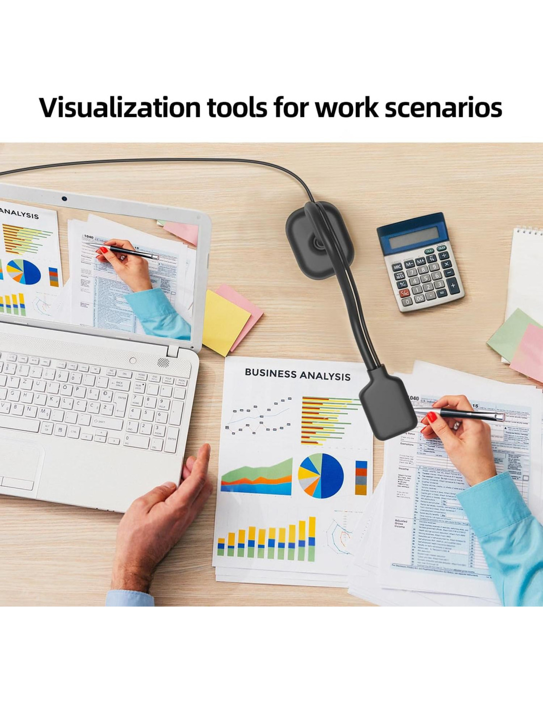 - Diseño USB Portátil: La manguera plegable y su construcción compacta hacen de esta cámara de documentos USB un compañero listo para viajar. Gíralo sin esfuerzo para vistas de múltiples ángulos durante videollamadas o sesiones de educación en casa, sin configuraciones voluminosas requeridas