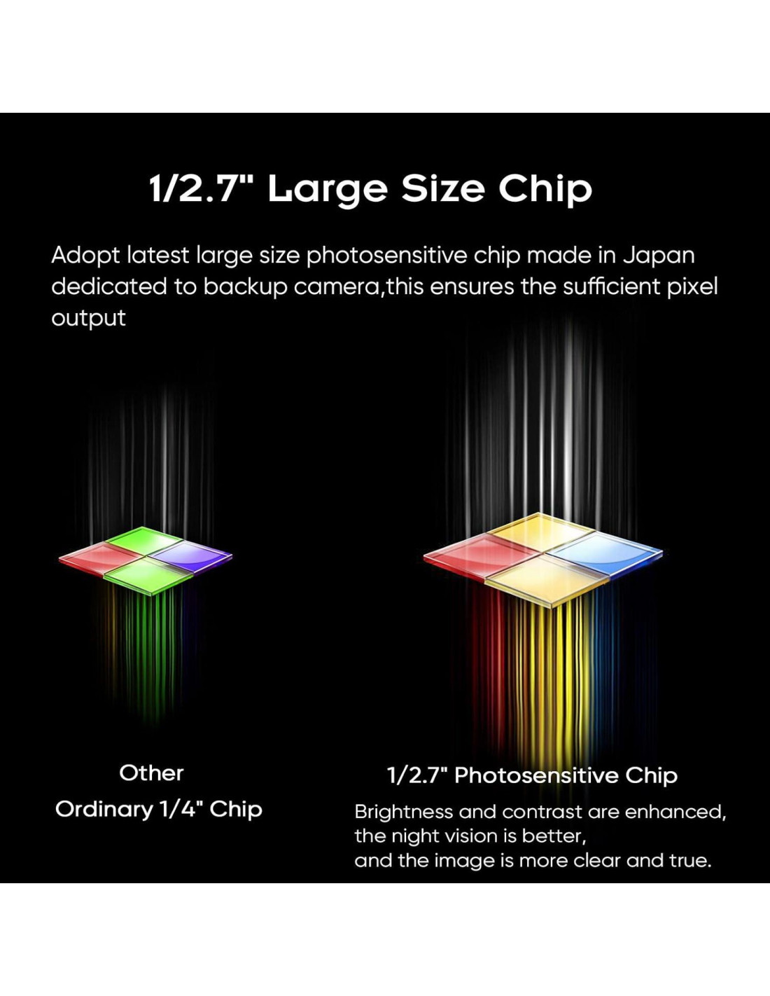 - Detalles Mejorados: Analizamos casi todas las reseñas de las cámaras de respaldo, conocemos mejor lo que los compradores necesitan. La cámara de reversa PMG3A optimiza muchos detalles, como nitidez de imagen, visión nocturna, estabilidad de señal, impermeabilidad, instalación, etc. Esta cámara de automóvil utiliza un chip japonés de 1/2.7 pulgadas, lente ojo de pez de alta transmitancia, vista frontal/trasera, carcasa metálica mini, cable apantallado de 8 m, etc., la optimización de cada detalle es significativa en su uso.