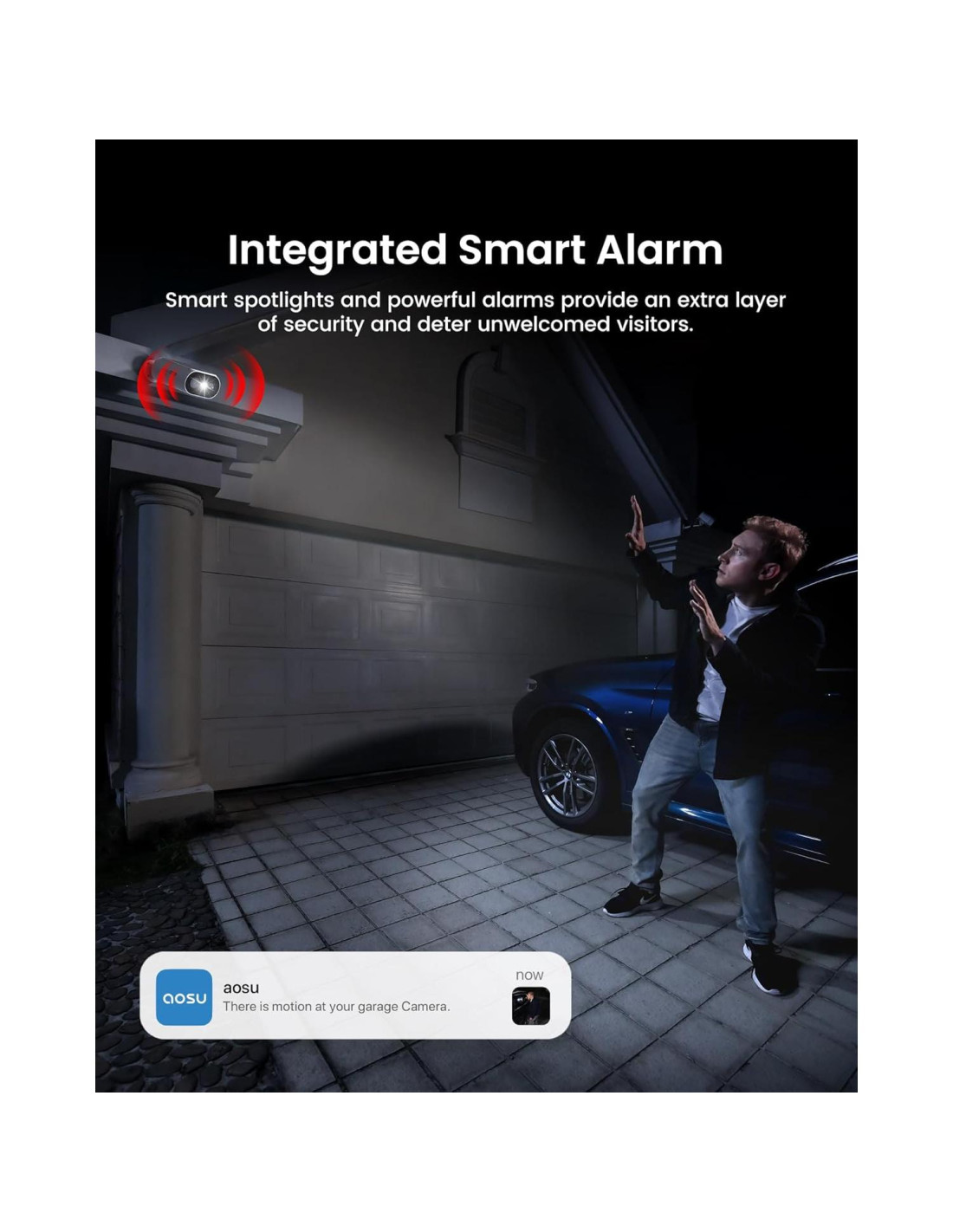 - Múltiples Alertas y Alarma Inteligente Integrada: Recibe notificaciones instantáneas con una imagen de vista previa rápida para personas que vienen, pasan o permanecen en la zona de detección. 3 tipos de alarma: sirena, focos y notificación de la app. Disuade a visitantes no deseados con luces de advertencia y alarmas por la noche para proporcionar una capa adicional de seguridad.