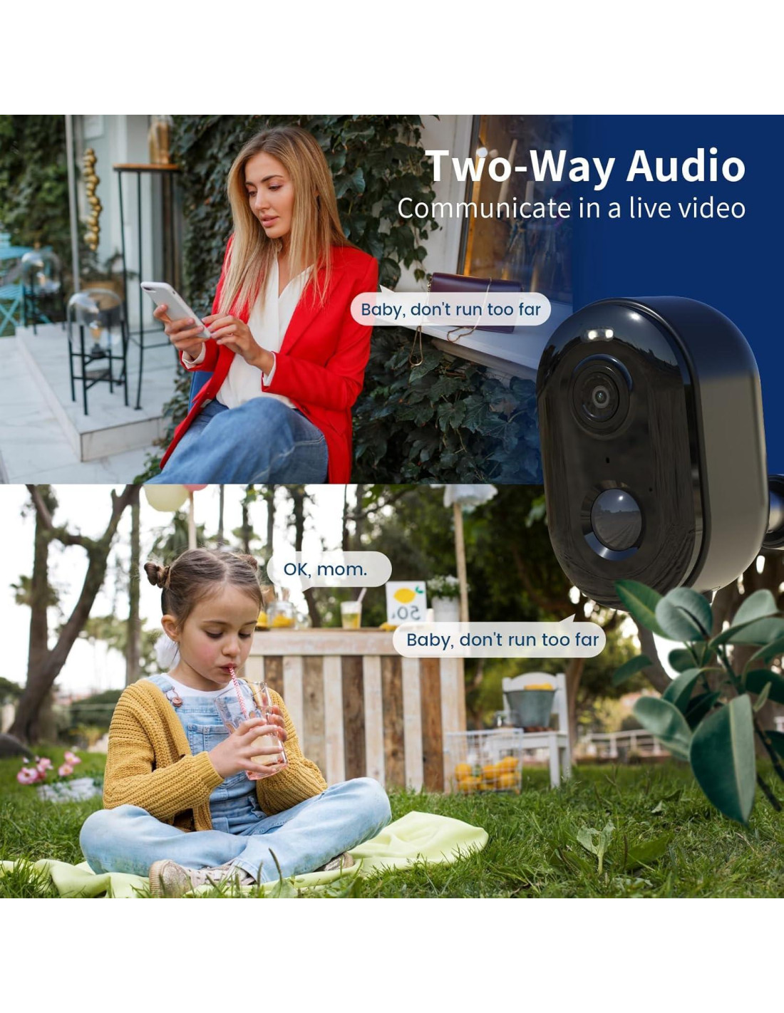 - Comunicación Bidireccional & Sirena Instantánea Inteligente El micrófono y altavoz bidireccionales incorporados te permiten realizar llamadas bidireccionales suaves y claras a los visitantes en tu puerta, puedes enviar advertencias verbales o tener una conversación. La cámara admite sirena, luz blanca intermitente o comunicación bidireccional que puede ahuyentar a ladrones y visitantes no deseados.