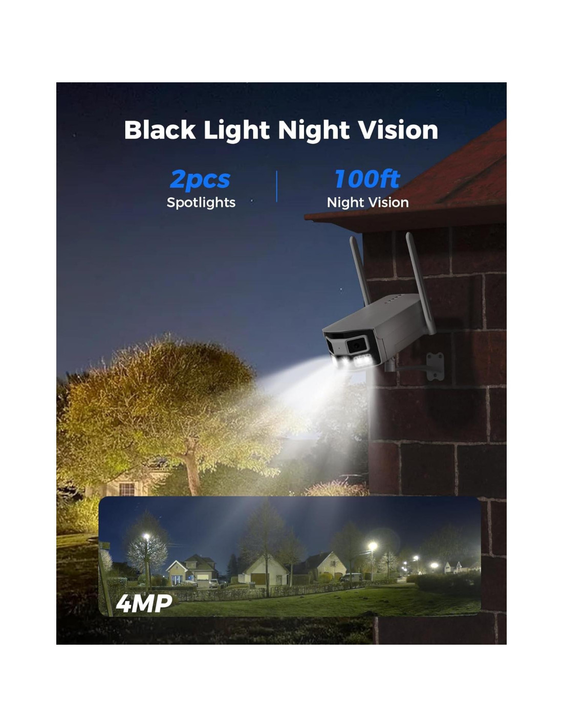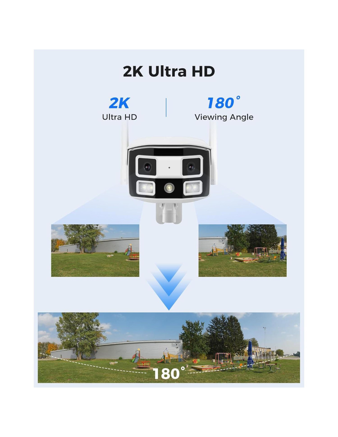 - Supervisión Ultra Amplia de 180 en Impresionante HD de 4MP: Disfruta de una cobertura excepcional con lentes dobles que trabajan juntos para ofrecer un amplio campo de visión de 180. Captura cada detalle con claridad de 4MP, proporcionando efectivamente la cobertura de dos cámaras estándar en una unidad.