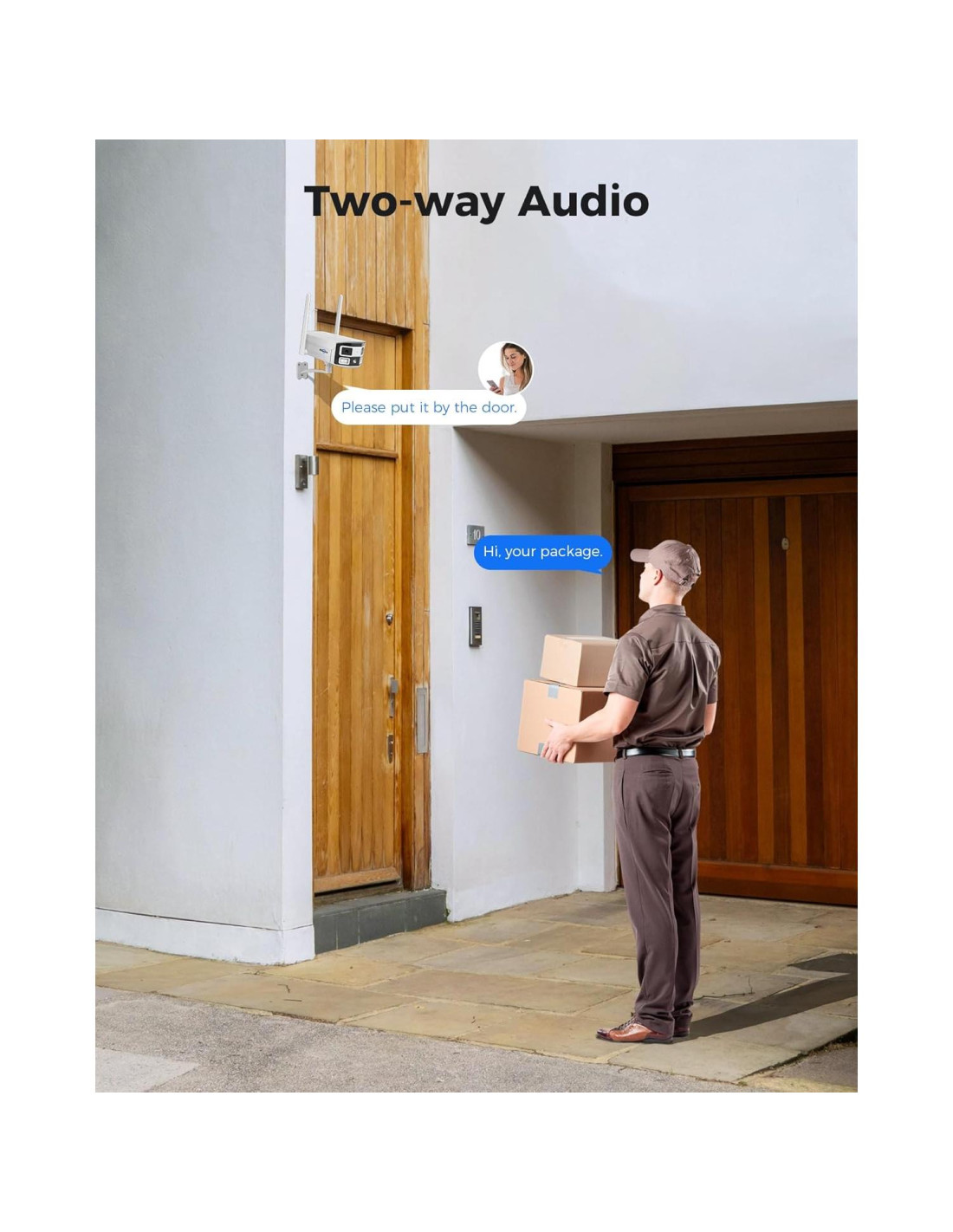 - Audio Bidireccional Interactivo y Alerta de Sirena: Comunica directamente con miembros de la familia o visitantes utilizando la función de audio bidireccional accesible desde tu dispositivo móvil. Disuade a los invitados no deseados con una fuerte alerta de sirena, activada automáticamente por la detección de movimiento.