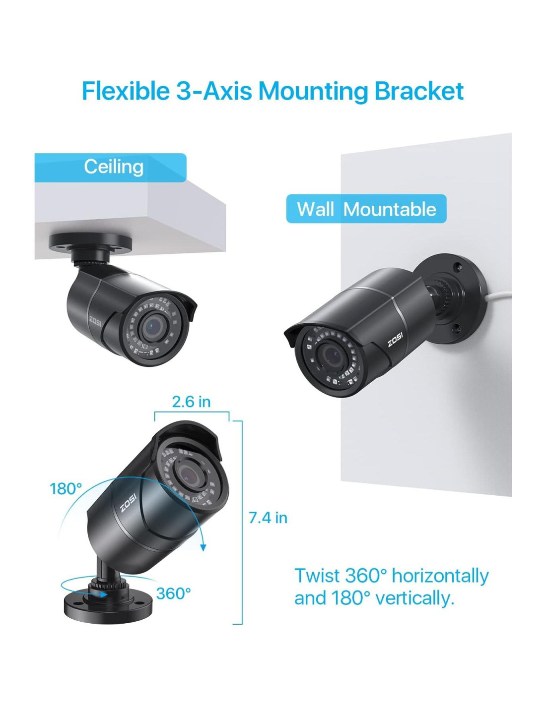 - (3). [ Materiales de Alta Calidad & Resistente al Agua IP66 ] __ Esta cámara está hecha de materiales metálicos de alta calidad y viene con un soporte de cámara de 3 ejes, un soporte para gestión de cables y una carcasa de aluminio resistente al agua IP66. Esto la hace ideal para un uso sin complicaciones en clima lluvioso o nevado.