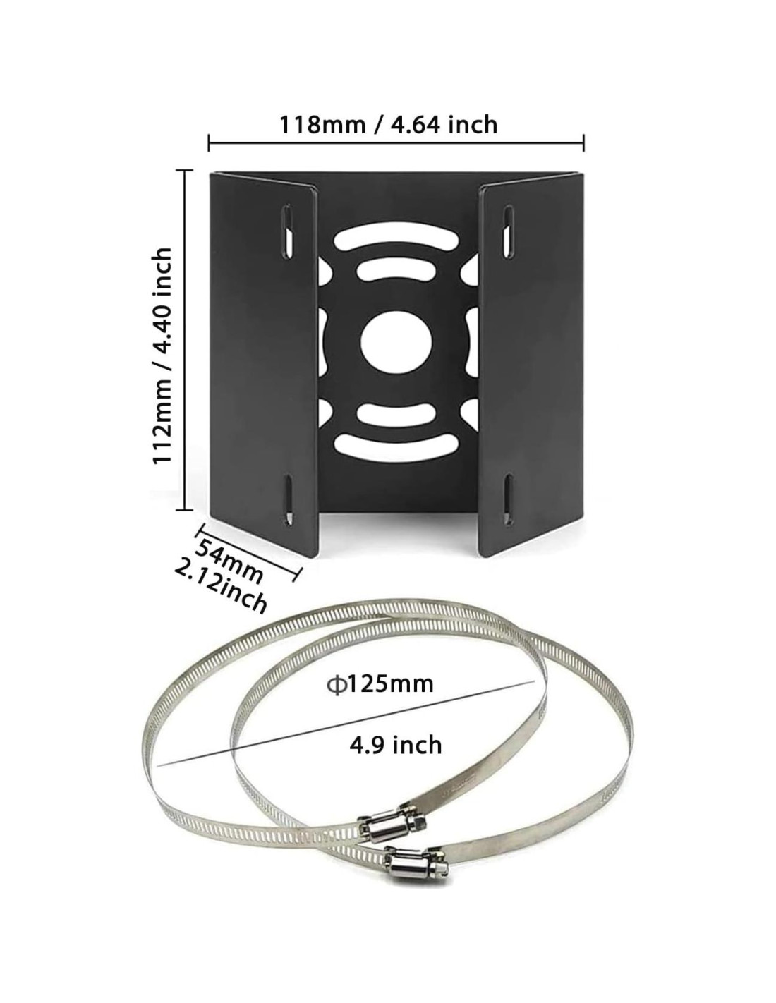 - Funciona para postes/tuberías entre 1.77in~3.35mmTamaño del producto: montaje 4.41in*4.64in, Bucles 1.77in~3.93in,