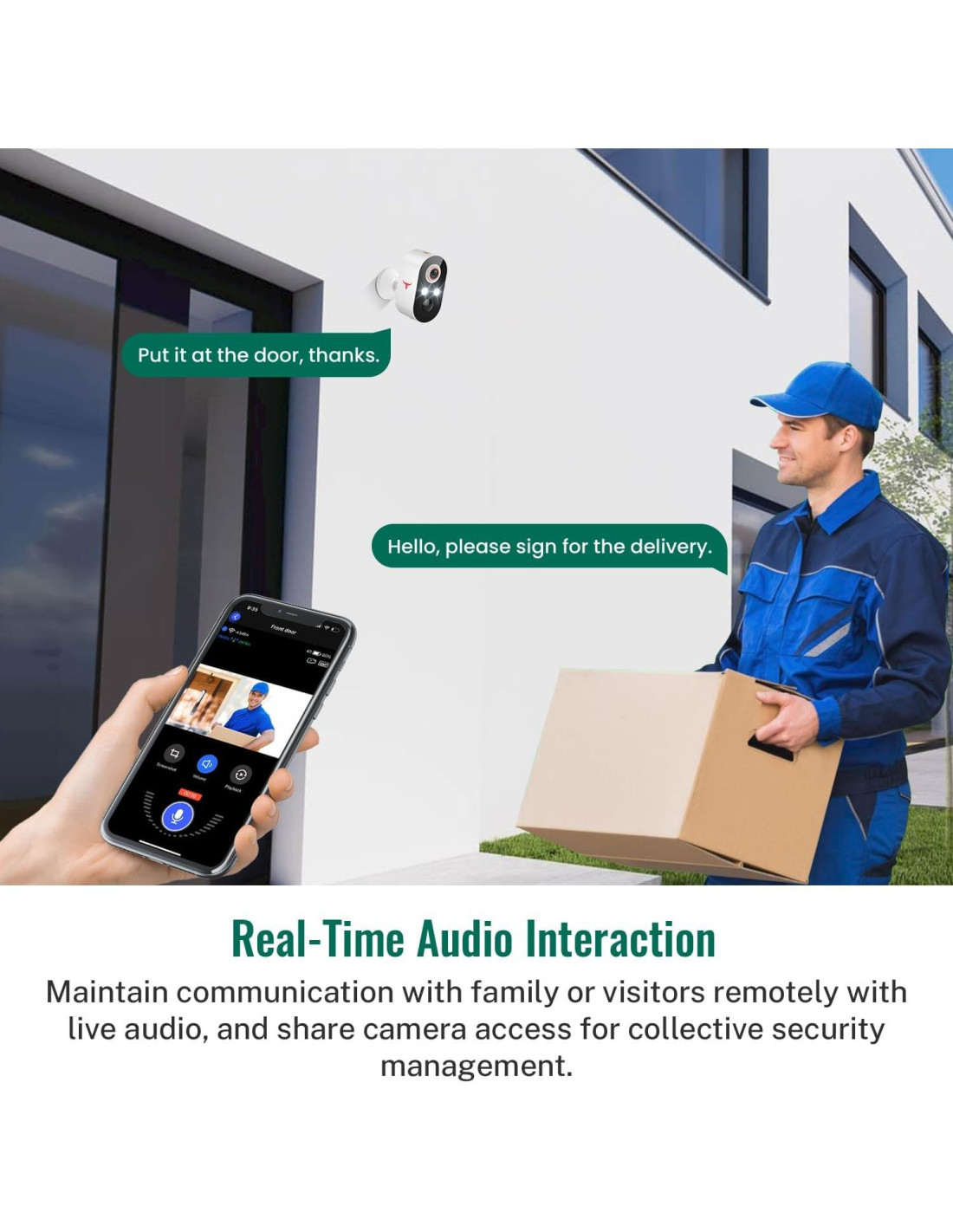 - Comunicación Bidireccional para Mantenerse Conectado: Habla con invitados o personal de entrega incluso cuando no estás en casa.