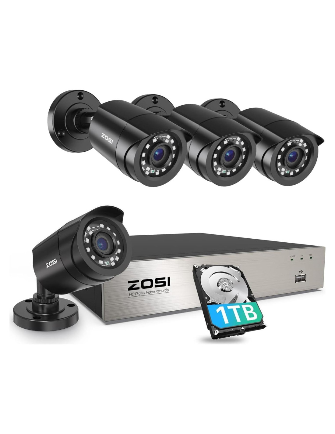 - [Disco Duro de Seguridad de 1TB Integrado] Soporta grabación continua ultra larga y respaldo por USB. El DVR puede configurarse para sobrescribir automáticamente las grabaciones más antiguas almacenadas internamente o puedes transferir esos archivos de video por USB a una memoria USB o disco duro externo.
