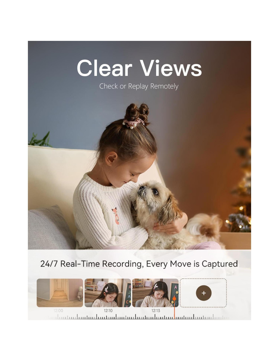 - Comunicación Bidireccional y Alarmas de Detección Inteligente: Mantente conectado y protegido. Habla y escucha en vivo desde cualquier lugar usando el altavoz y micrófono integrados. La supervisión inteligente reconoce instantáneamente la actividad de personas o mascotas y envía alertas en tiempo real a tu teléfono por cualquier sonido o movimiento. Protege proactivamente tu hogar y seres queridos 24/7.