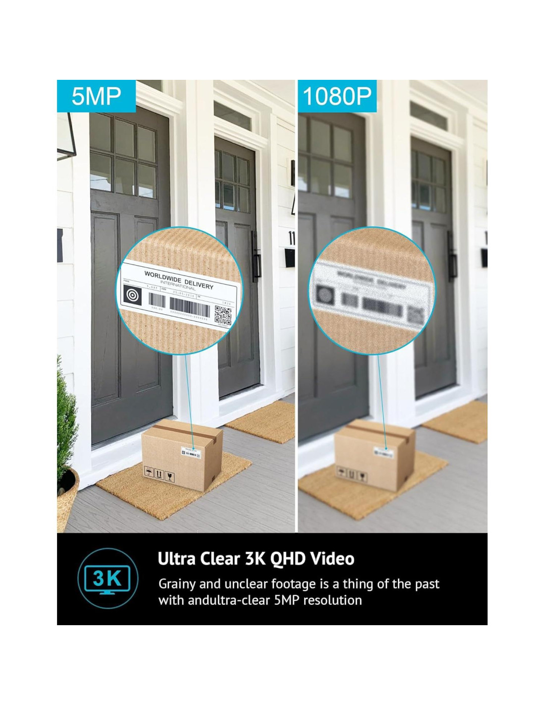 - Cámara HD 3K a Prueba de Agua IP65: Cámara de seguridad exterior WiFi cableada con resistencia a la intemperie IP65; ofrece claridad de 5MP 3K para vigilancia detallada, tanto de día como de noche; compatible con Amazon Alexa y la aplicación LaView