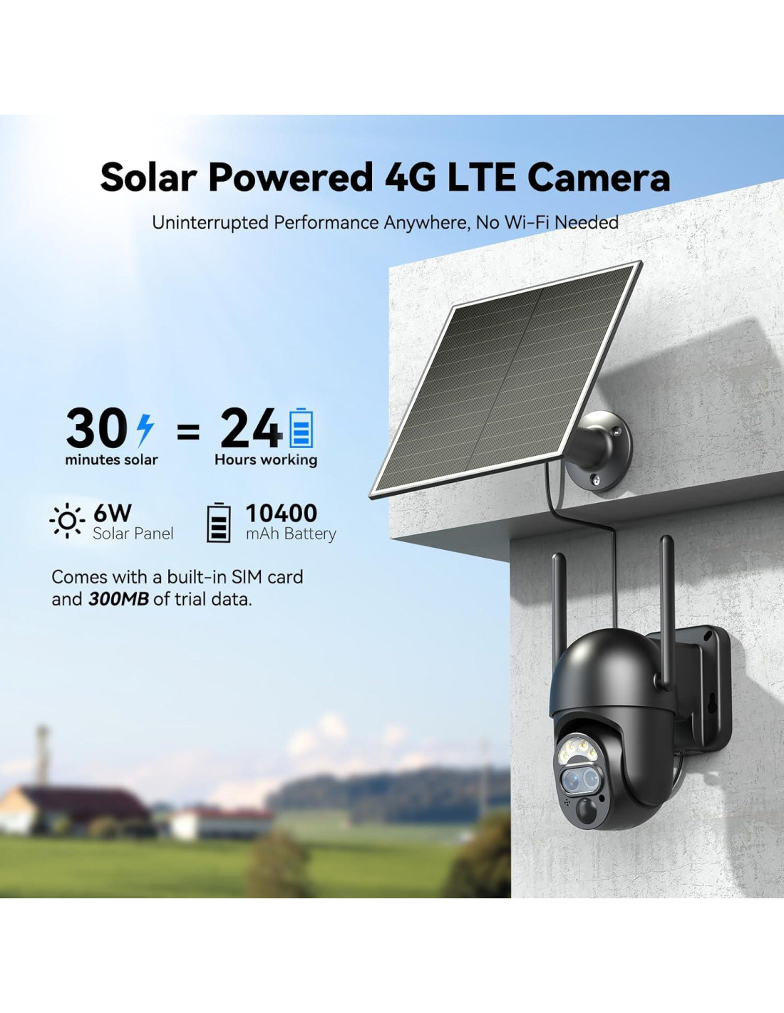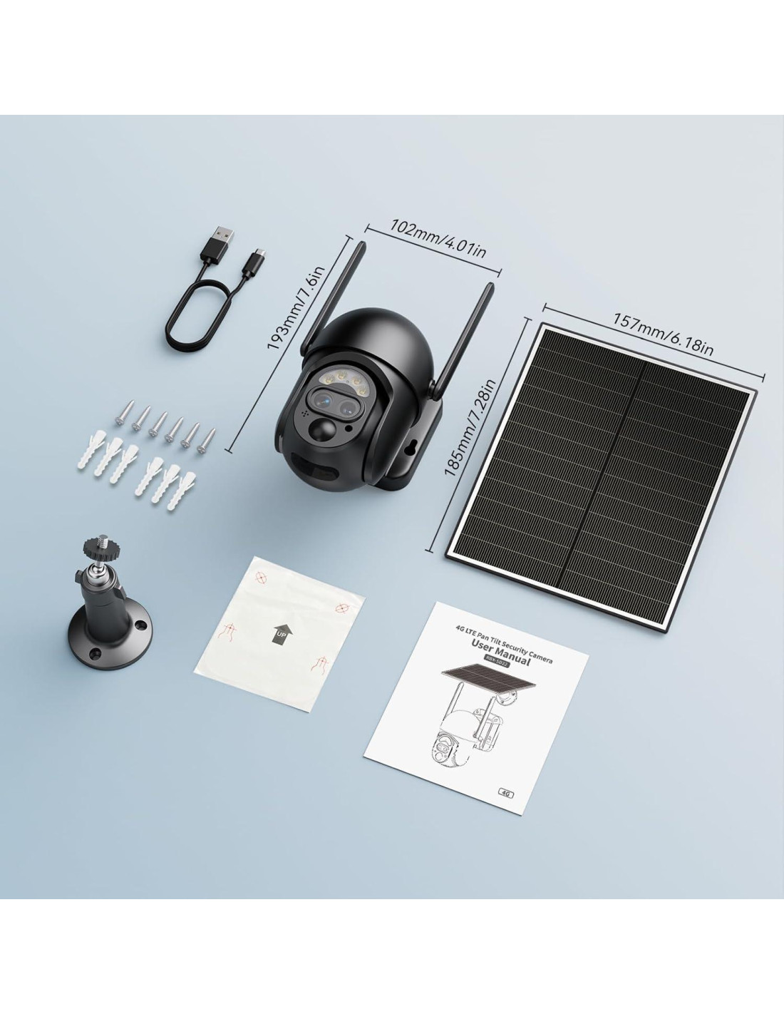 - Conectividad 4G para Acceso en Cualquier Lugar: Diseñada para ubicaciones sin WiFi, la cámara cuenta con una SIM card incorporada compatible con las redes 4G de Verizon, T-Mobile y AT&T. Incluye 300MB de datos de prueba para comenzar. Una vez que se agoten los datos de prueba, se requiere una suscripción a un plan de datos ilimitado para continuar utilizando el servicio. Tenga en cuenta que la SIM card es incorporada y no extraíble.