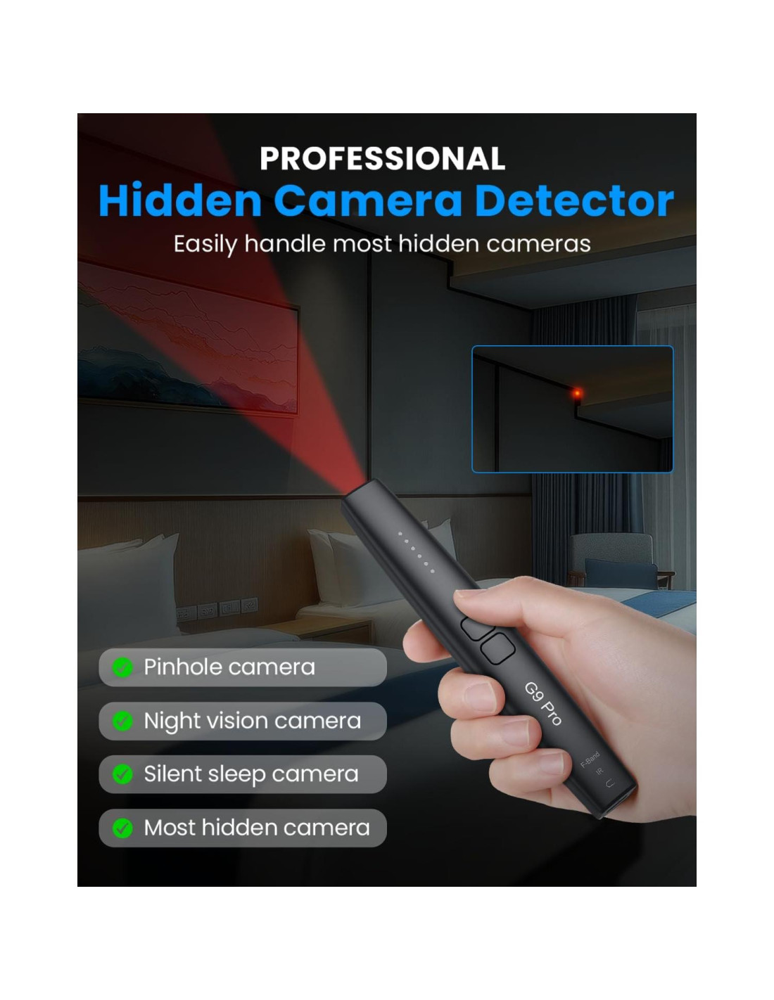 Desde la escucha clandestina hasta las cámaras ocultas, tus amenazas han desaparecido - tu privacidad es tuya de nuevo. A partir de ahora, deja que el G9 Pro te acompañe en todo momento, ya sea que te alojes en un hotel, alquiler vacacional, AirBnB o asistas a una importante reunión de negocios, siempre protegiendo tu privacidad para detectar cámaras ocultas, detectar dispositivos de grabación, detectar dispositivos de escucha, detectar rastreadores GPS, etc. Este detector de bichos y cámaras ocultas G9 Pro de la serie GUMOZU es un producto insignia de la marca JAXTIN. ¡Te dará más tranquilidad que antes!