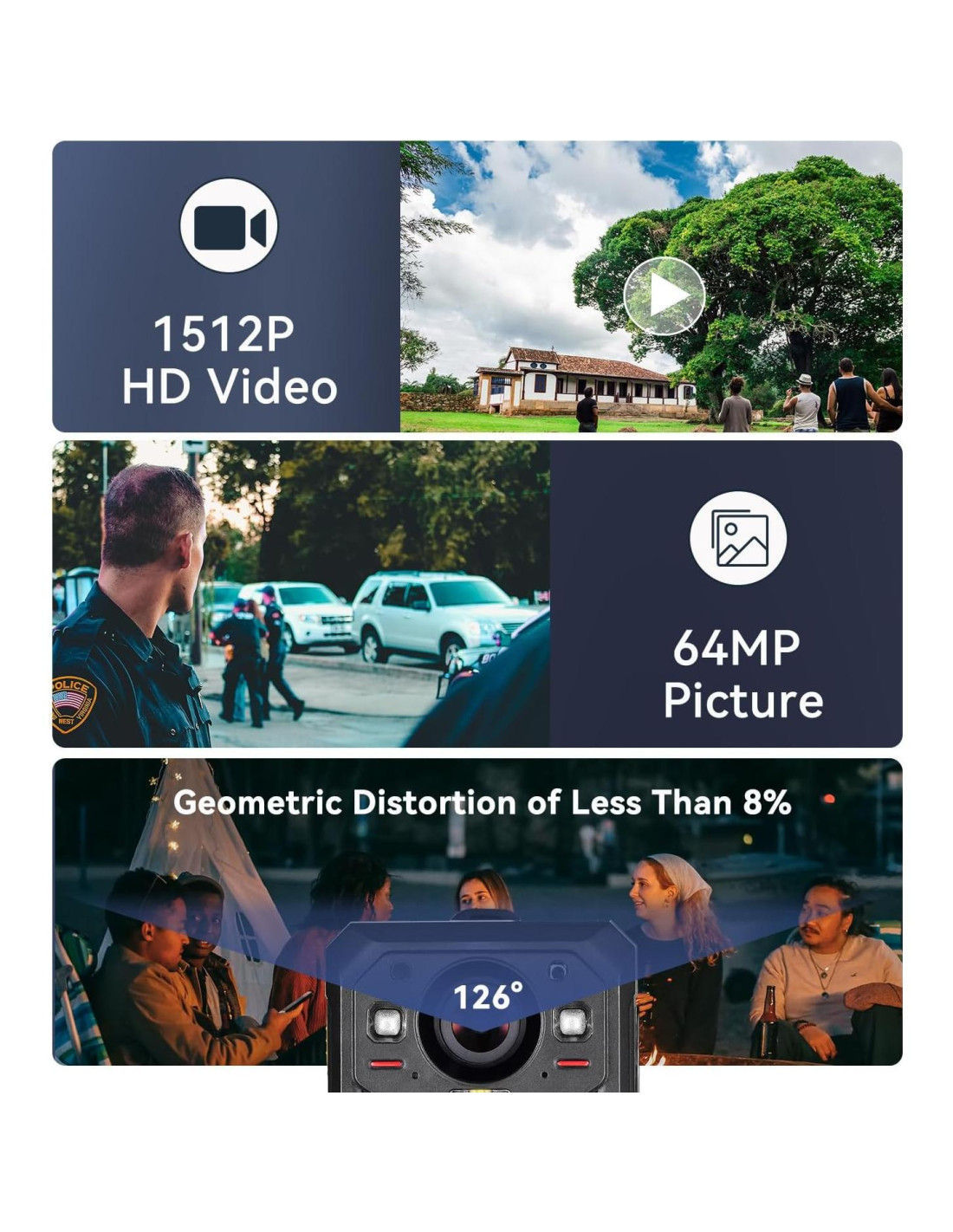 - [Pantalla HD 1512P y Visión Nocturna] Esta cámara corporal para aplicaciones de ley con video HD 1512P, ángulo amplio de 126 y distorsión geométrica de menos del 8% permite a los usuarios obtener imágenes de manera clara y amplia. Las cámaras corporales Ponycam están equipadas con LEDs infrarrojos de alta intensidad y pueden capturar imágenes claras en la oscuridad total. Los usos adecuados de la cámara portátil incluyen policía, seguridad, abogados, familias, actividades al aire libre y aplicaciones industriales.