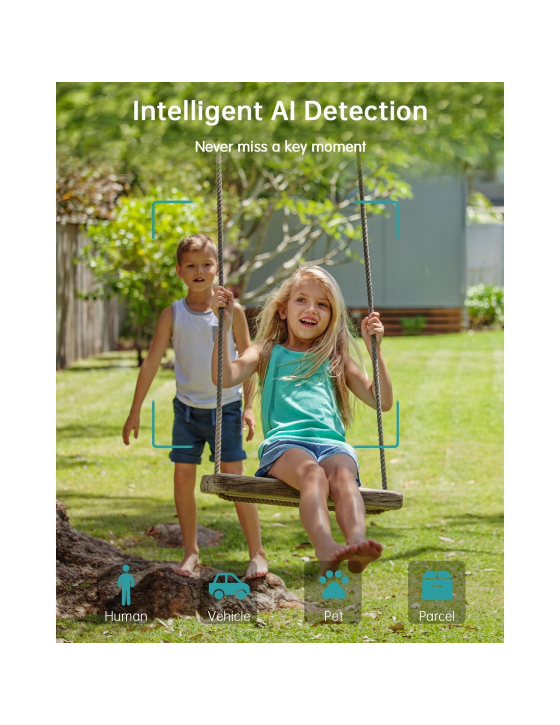 - 2 Opciones de Almacenamiento y Alertas Inteligentes: Esta cámara inalámbrica para exterior ofrece 3 tipos de alarma: sirena, foco y notificaciones de la aplicación. Cuando se detecta movimiento, recibirás una alerta en tu aplicación móvil, y las grabaciones se almacenan en una tarjeta de memoria micro (hasta 128GB, no incluida) o almacenamiento en la nube (graba 6s y cobertura en bucle de 7 días). También incluye análisis de IA para identificar personas, mascotas, vehículos y paquetes para alertas más relevantes (se requiere actualización).