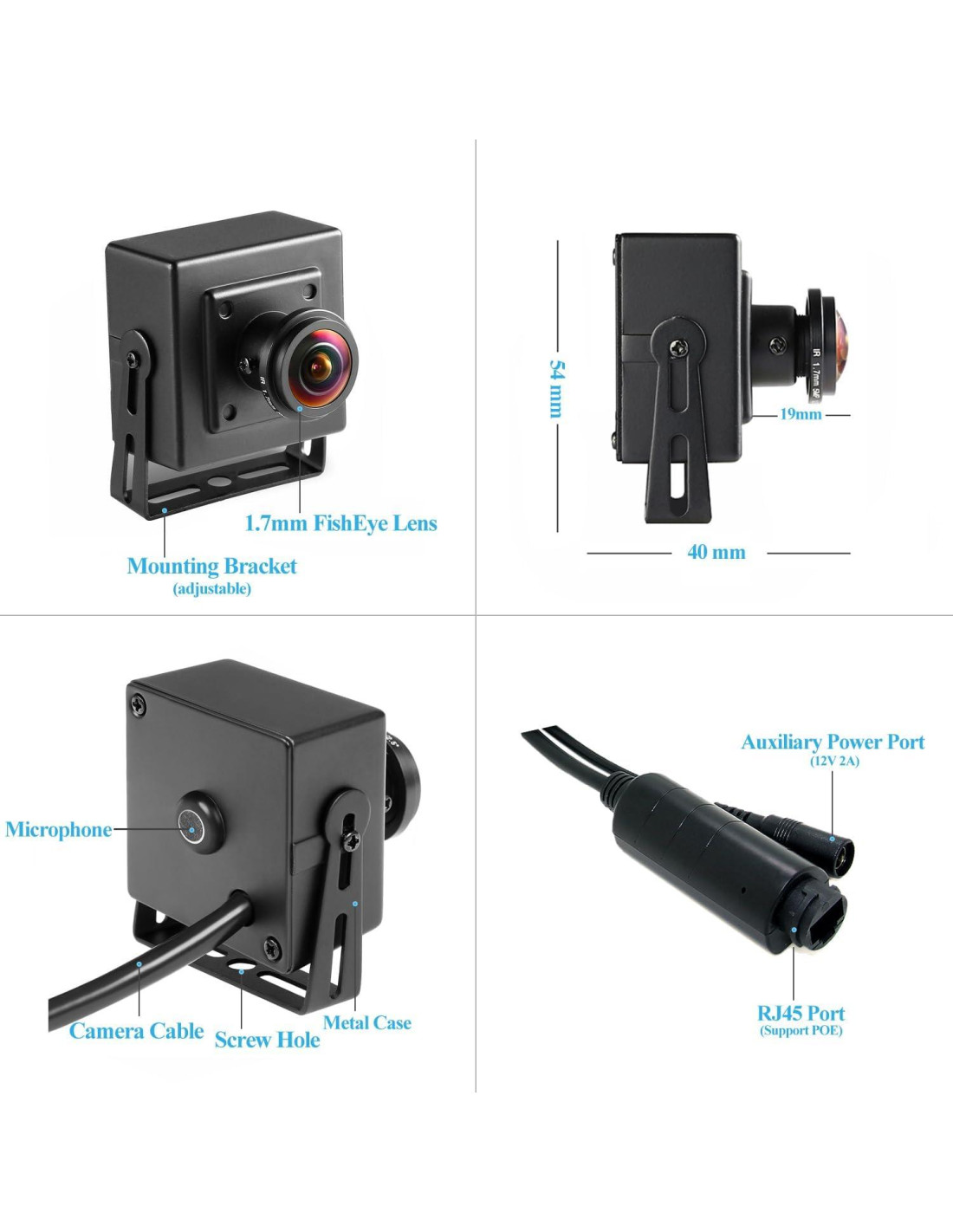 Diseño estándar de cámara de seguridad, soporte de alimentación desde un switch PoE, resolución de 5MP que ofrece mejor calidad de imagen y más detalles en comparación con otras cámaras de vigilancia mini. La carcasa de metal es más duradera que la de plástico. Nota: 1. Esta cámara soporta tanto conexión PoE de 48V como conexión de alimentación DC de 12V, puedes elegir alimentarla con un switch PoE de 802.3af 48V o un adaptador de corriente DC de 12V/2A (No incluido). 2. Esta cámara por defecto es de 5MP y H.265, si tu NVR no soporta 5MP o H.265, puedes cambiar nuestra cámara a 1080P (2MP) y H.264 para adaptarse al NVR. 3. Debido a su tamaño mini, la cámara generará más calor y es seguro y normal, no te preocupes. Equipado con chips de 5 megapíxeles 2880 x 1620P y un sensor CMOS de alto rendimiento, la imagen es más clara con más detalles en comparación con cámaras de 2MP/3MP/4MP, no perderás ningún detalle. Escucha lo que más importa usando el micrófono integrado para audio unidireccional. Audio: Una vez que la cámara detecte movimiento humano, la notificación se enviará a tu teléfono o NVR o software de inmediato.