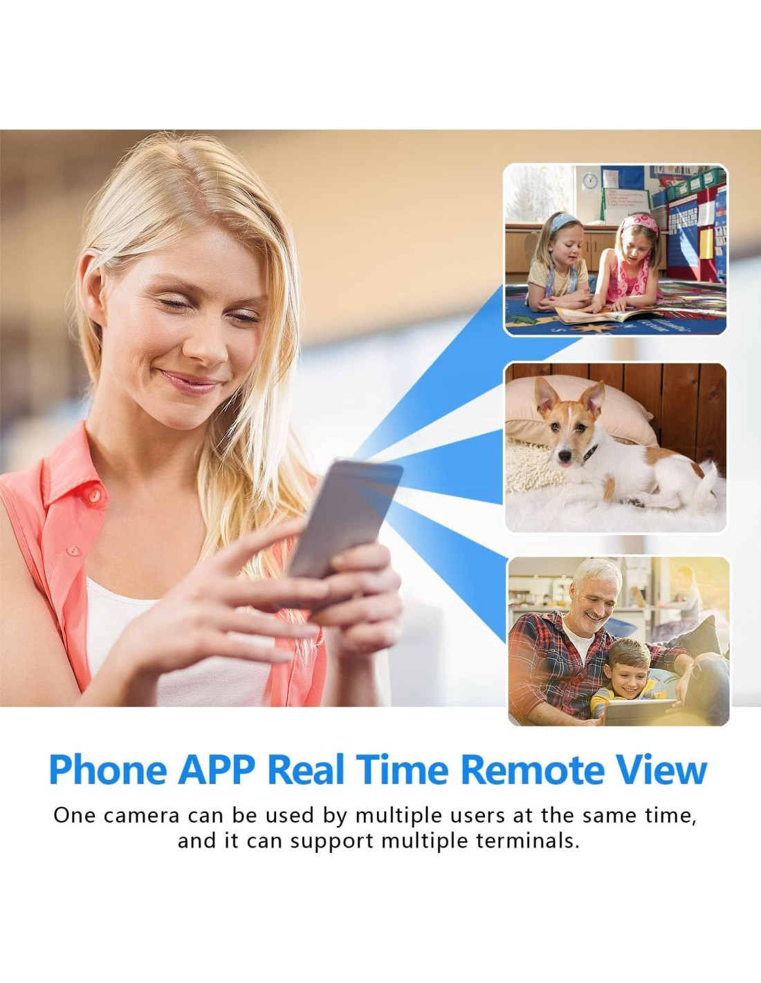 - [Tecnología Mejorada de Detección de Movimiento] - Cámara WIFI con la detección de movimiento inteligente mejorada, puedes ajustar manualmente la sensibilidad del sensor. Una vez que se detecta movimiento, la pequeña cámara enviará una notificación de alarma con imágenes a tu teléfono. Puedes iniciar sesión en la App para ver lo que está sucediendo en tiempo real y nunca preocuparte por perder algo importante (según la política de no audio de Amazon).