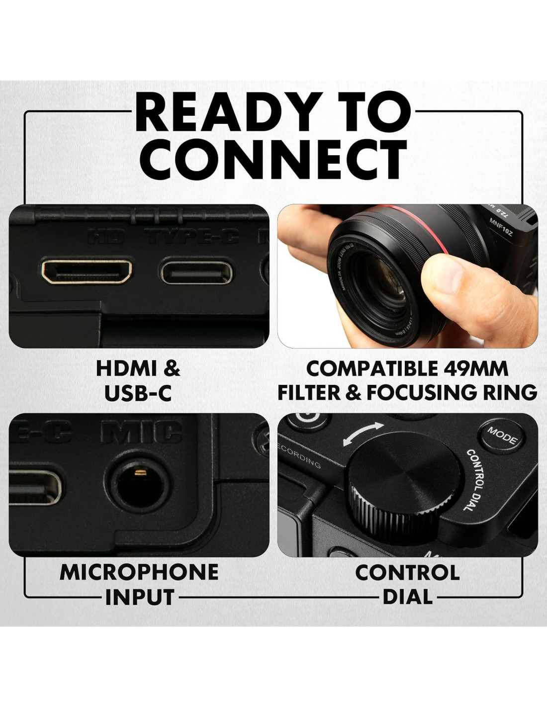Cámara Minolta 72MP con zoom óptico 10x, negra