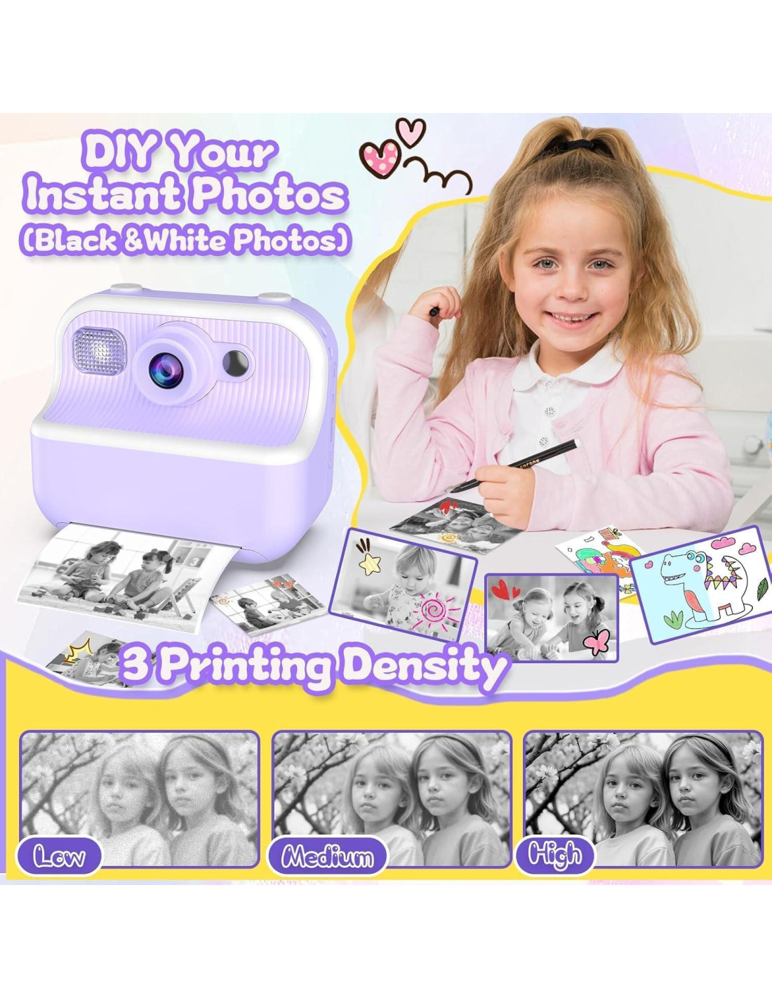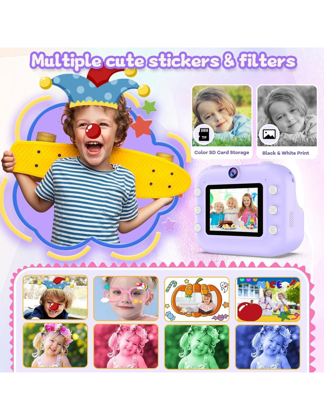 - Cámara Multifuncional para Niños - Cámara instantánea de 2.4 pulgadas para niños, rica en características, fácil de usar, especialmente diseñada para niños de 3 a 12 años. Incluye 4 juegos de rompecabezas, reproductor de música MP3, flash, soporte para grabación de video, selfies, reproducción, multilenguaje, impresión de fotos, configuración de fecha, etc. La cámara de juguetes satisface el uso diario de fotos de su hijo, para traer más diversión a la fotografía.