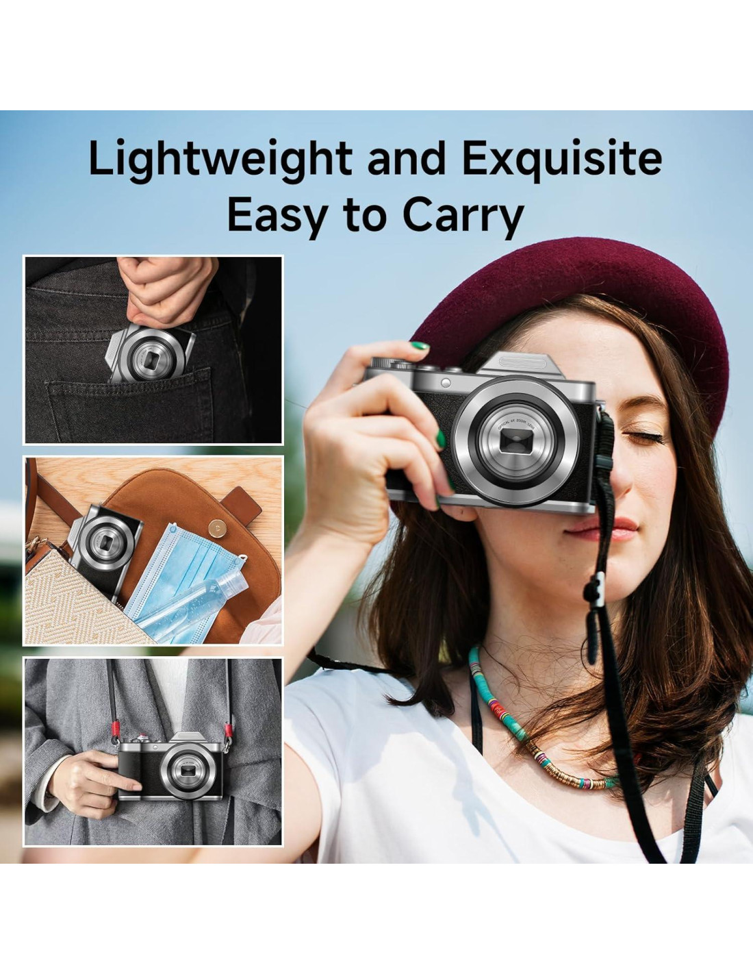- Captura la vida en brillante detalle. Con un sensor CMOS de alta sensibilidad, esta cámara digital retro de 64MP ofrece fotos nítidas de alta resolución y videos 4K suaves, incluso en condiciones de poca luz. Perfecta para viajes, recuerdos cotidianos y vlogs creativos.