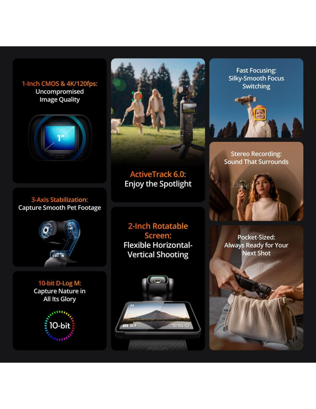 - DJI USA Autorizado - GARANTÍA TOTAL DE EE. UU. + 2 AÑOS DE GARANTÍA EXTENDIDA CPS | OSMO Pocket 3 - Captura Metraje Impresionante - Esta cámara gimbal de bolsillo para vlogging cuenta con un sensor CMOS de 1 pulgada y graba en resolución 4K a impresionantes 120fps. Captura vistas nocturnas y atardeceres impresionantes con claridad mejorada.